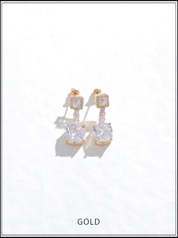 【ピアス】スクエアストーンチェーンピアス【Fサイズ/2カラー】[OF02]【YN】 [PI148-251105-1]