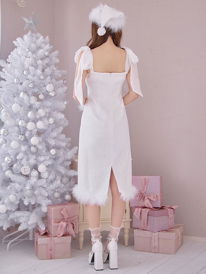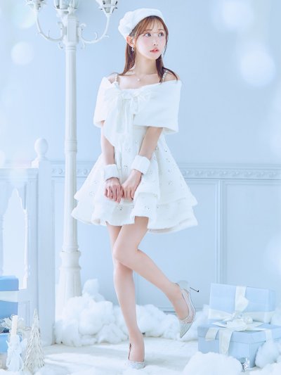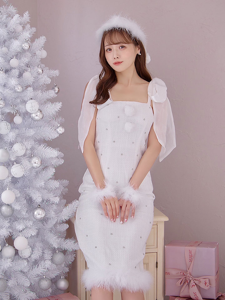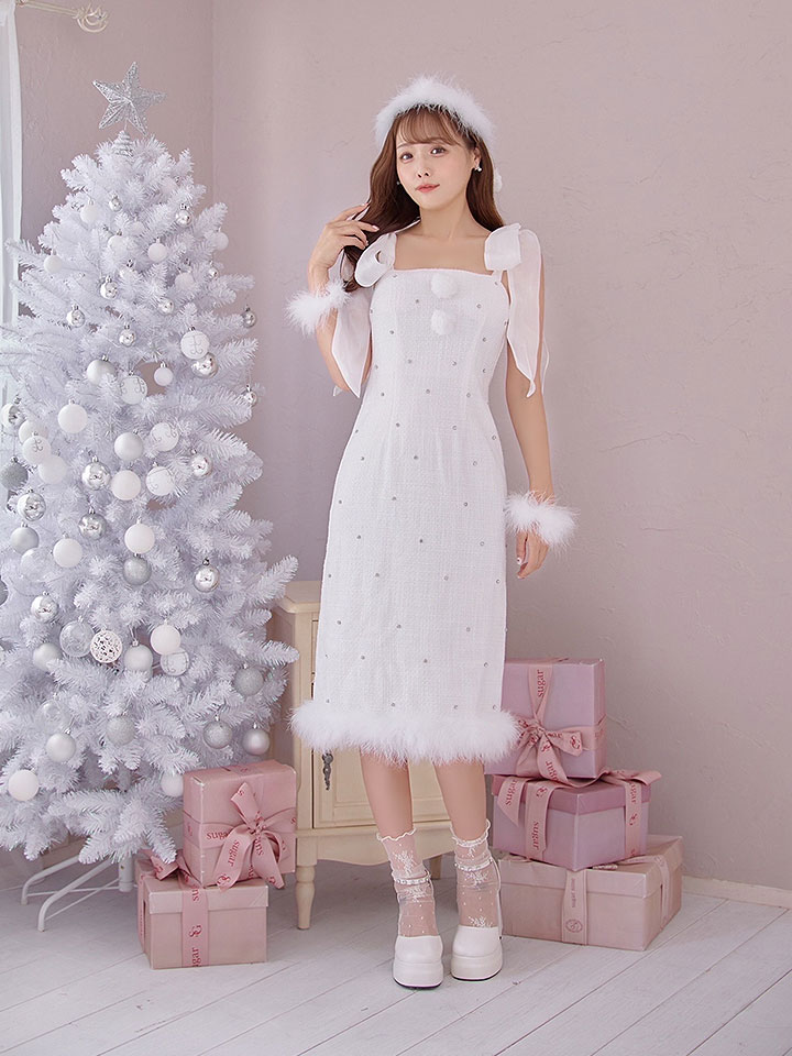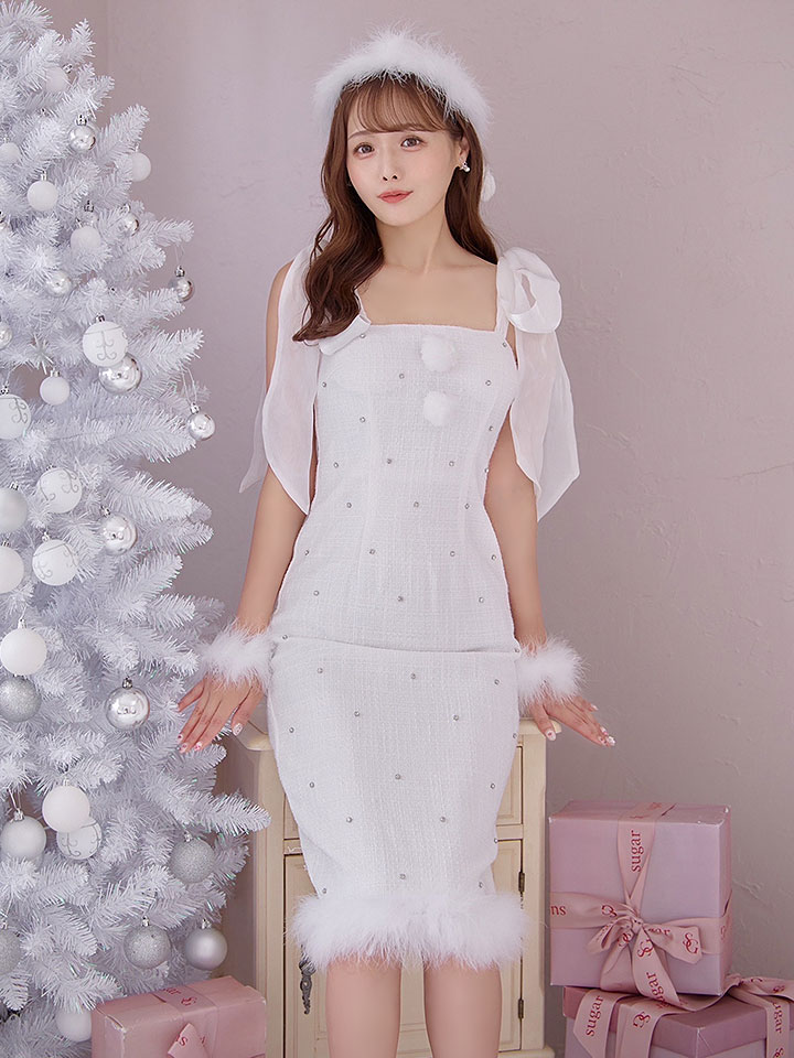 贅沢にあしらったビジューがきらびやかなツイードワンピースサンタコス。