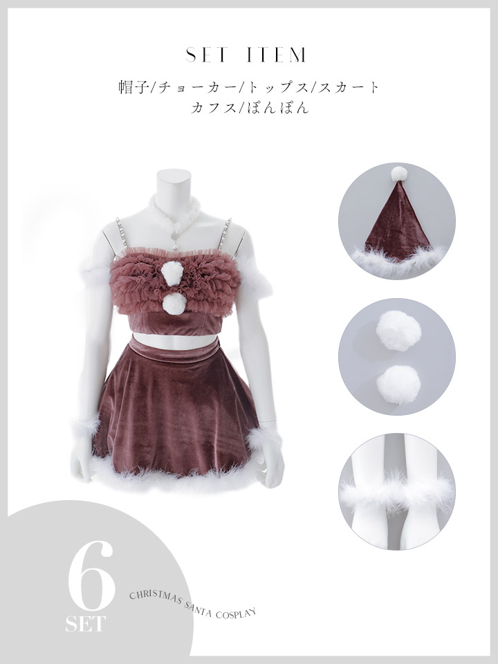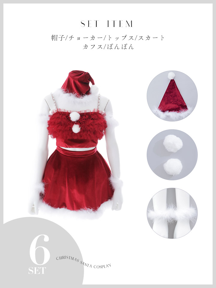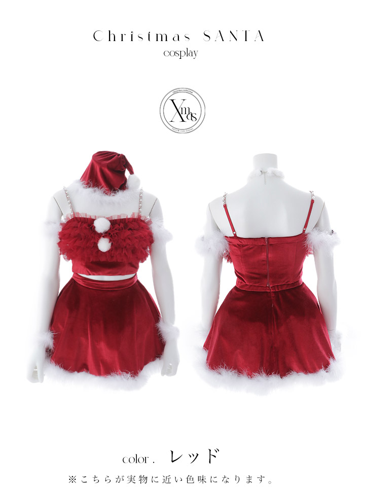 - > 【ノベルティ対象】【即日発送】【送料無料!】【サンタ】チュールフリルオフショルセットアップサンタコスプレ【コスプレ6点セット】【XS-Lサイズ/2カラー】[OF04/OF04]