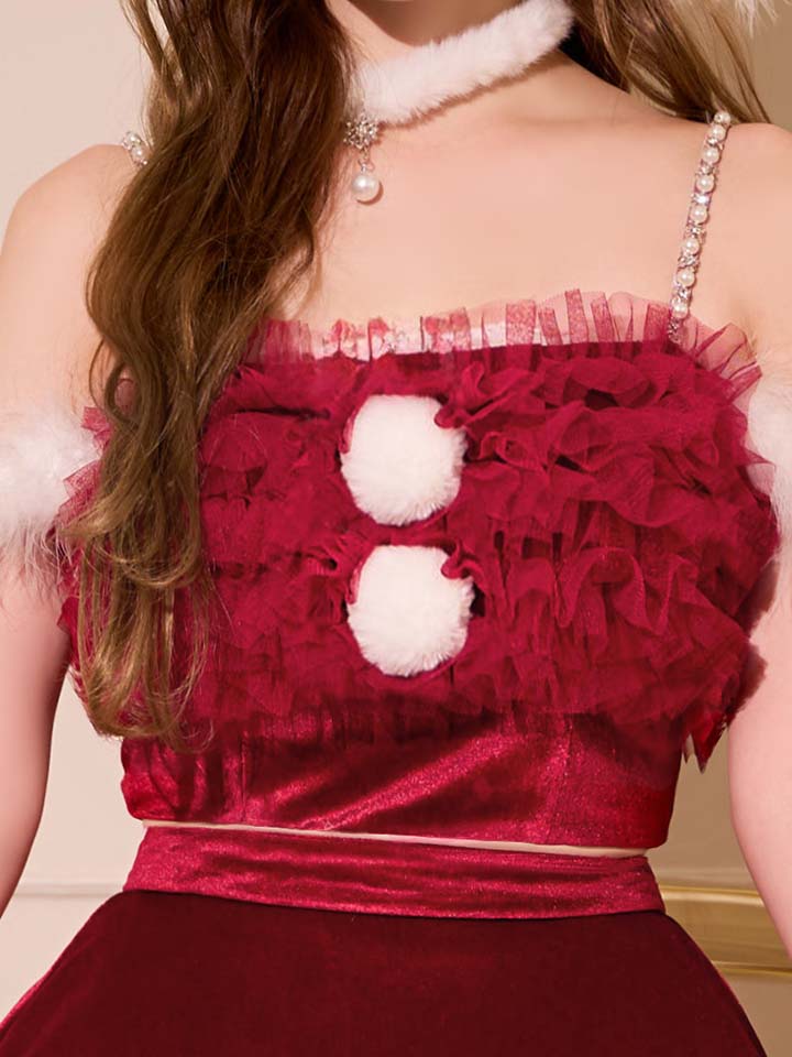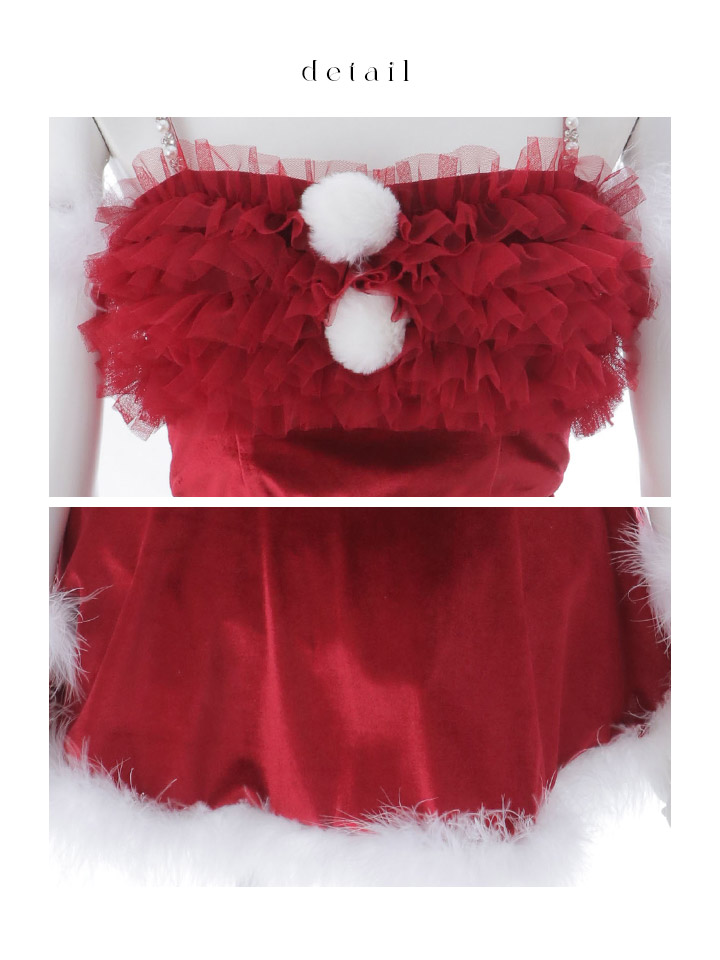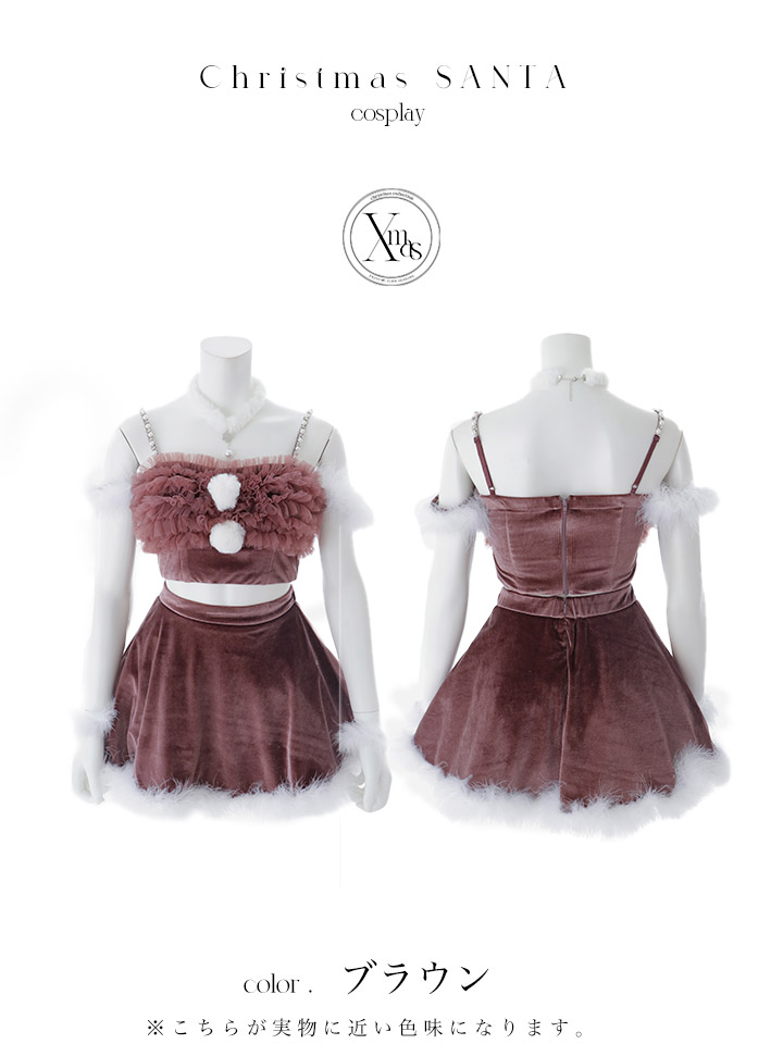 ブラウン レッド クリスマス フリル ベロア ドレス ファー付きワンピース キャバドレスクリスマス イベントドレス
