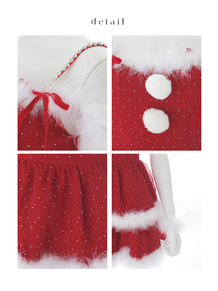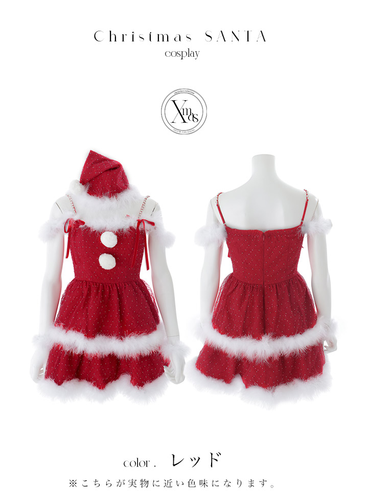 - > 【即日発送】【送料無料!】【サンタ】サイドリボンストーンフリルサンタコスプレ【コスプレ4点セット】【XS-XLサイズ/1カラー】[OF01]
