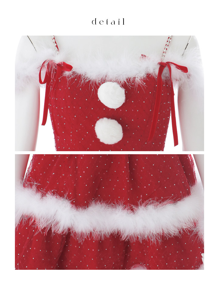 【即日発送】【送料無料!】【サンタ】サイドリボンストーンフリルサンタコスプレ【コスプレ4点セット】【XS-XLサイズ/1カラー】[OF01] [SS-204-SB-dzw-R-25RK]