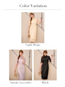 XLサイズあり【AMORA GRACE / アモーラグレース】 オケージョンドレス/ パーティードレス/ お呼ばれドレス/ 総レース/ ハイネック/ ギャザースリーブ/ ハイウエスト/ ミモレ丈/ ワンピース[OF05] [G60211HL-LBE-25RK]