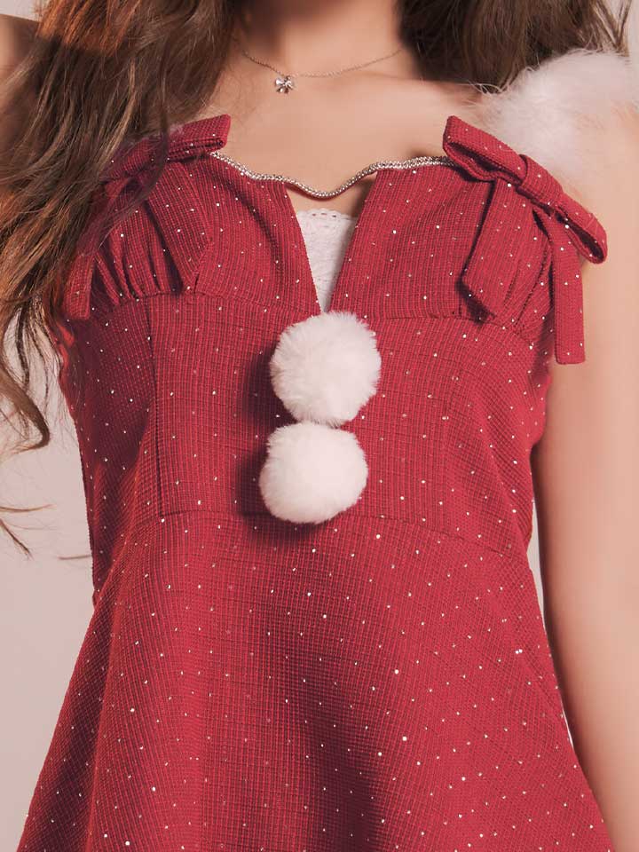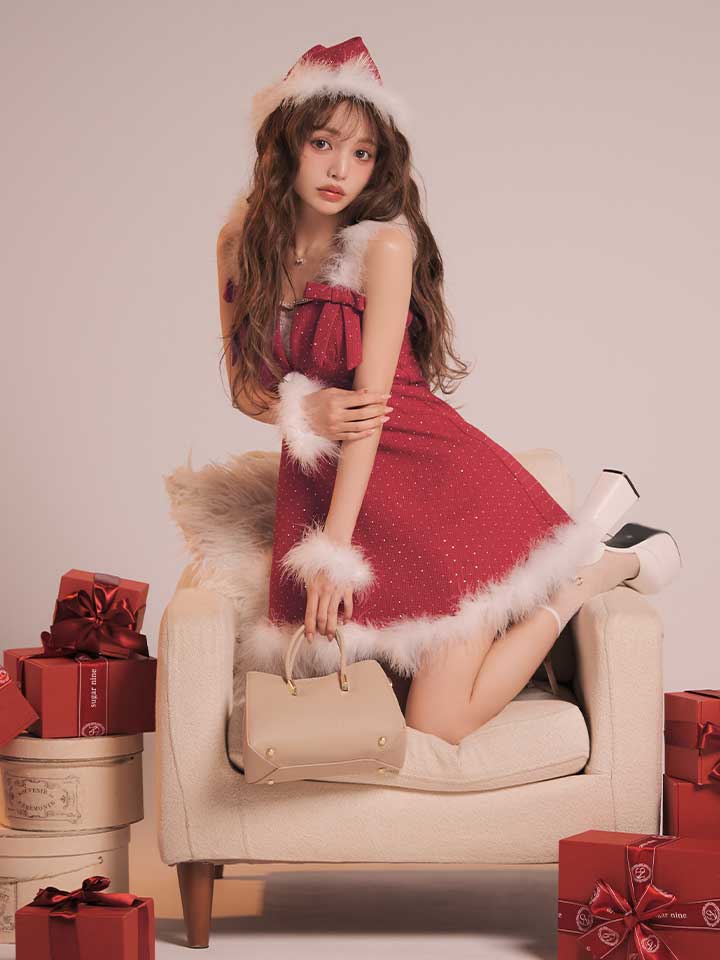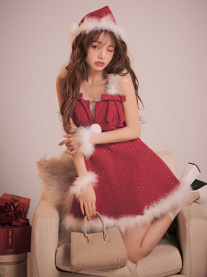- > 【即日発送】【サンタ】リボンファーサンタコスプレ【コスプレ4点セット】【XS-XLサイズ/2カラー】[OF04]