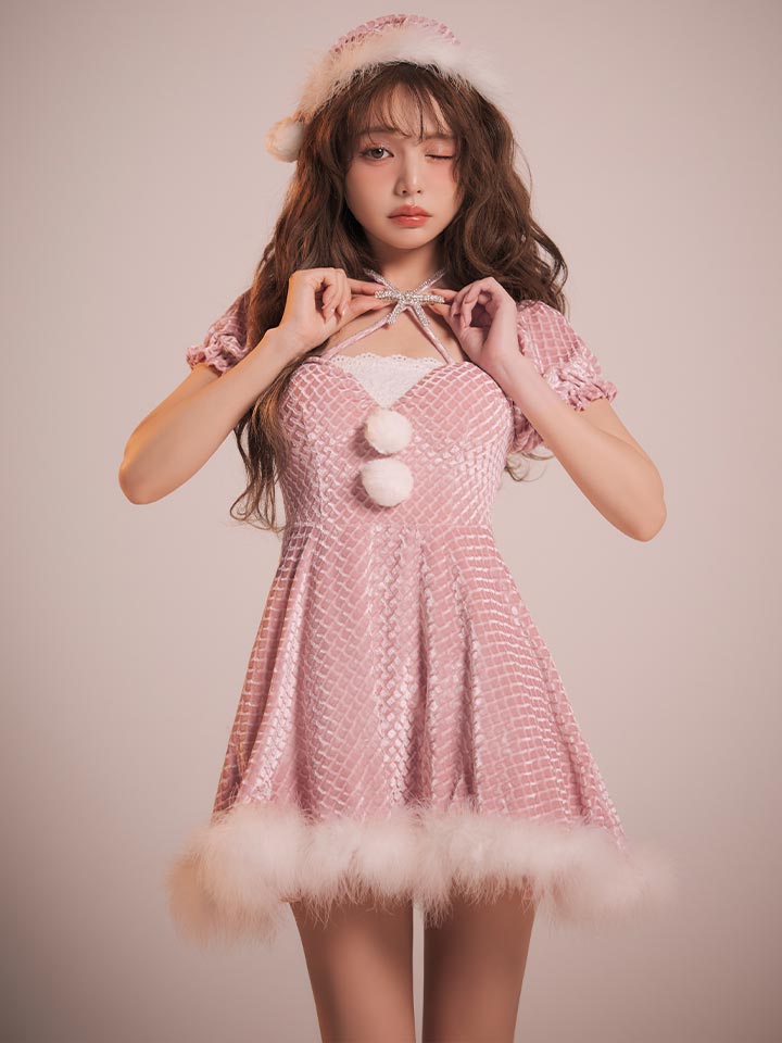クロスネックがセクシーさを演出する、オフショルサンタコスプレ。
