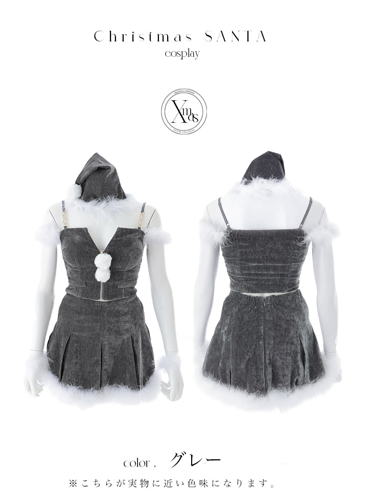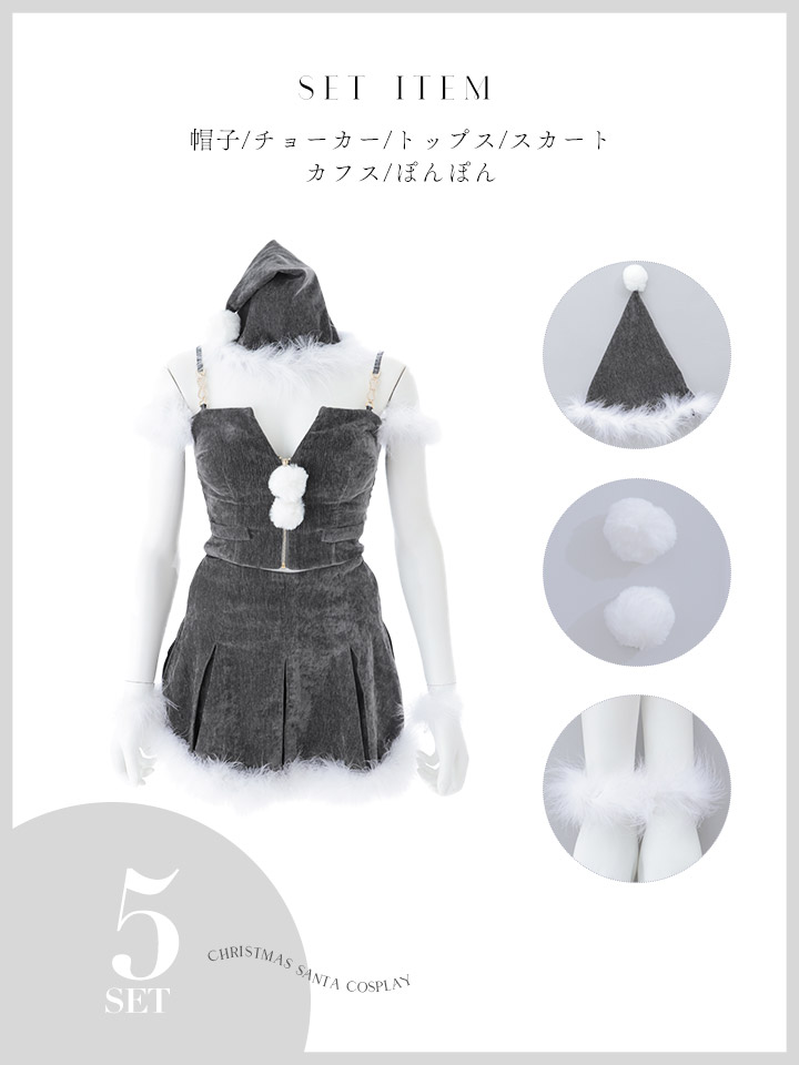 【即日発送】【サンタ】ファーショルダーシースルーフレアサンタコスプレ【コスプレ5点セット】【XS-XLサイズ/2カラー】[HC03] [SS-186-YN-dzw-GY-25PO]