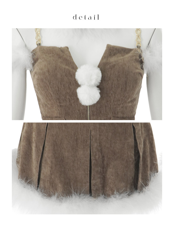 ブラウン グレー クリスマス ビジュー ベロア ドレス ファー付きワンピース キャバドレスクリスマス イベントドレス