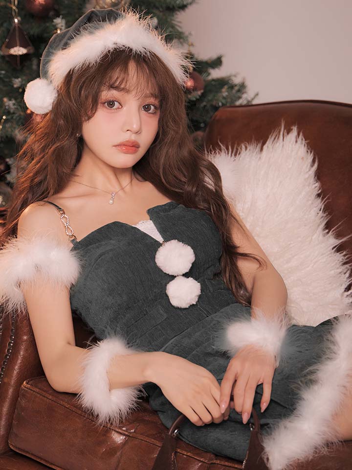 【即日発送】【サンタ】ファーショルダーシースルーフレアサンタコスプレ【コスプレ5点セット】【XS-XLサイズ/2カラー】[OF04] [SS-186-YN-dzw-GY-25PO]