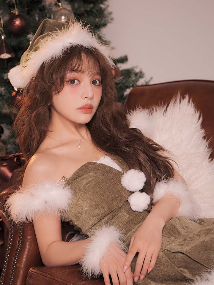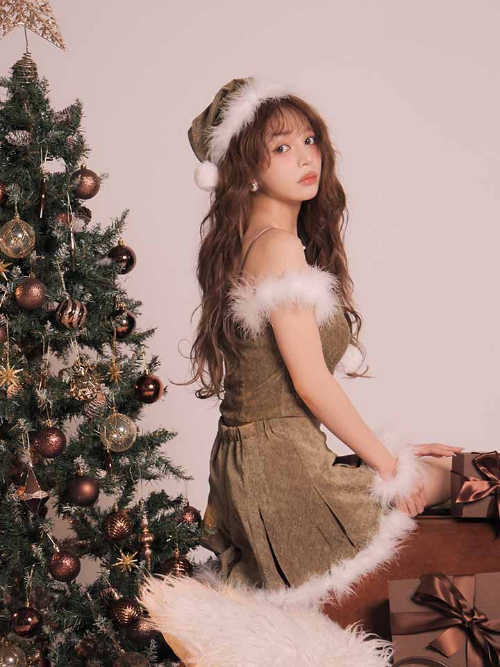 クロスネックがセクシーさを演出する、オフショルサンタコスプレ。