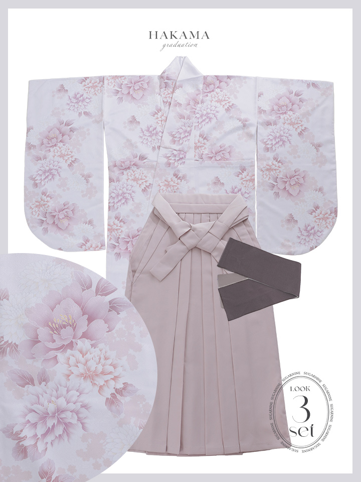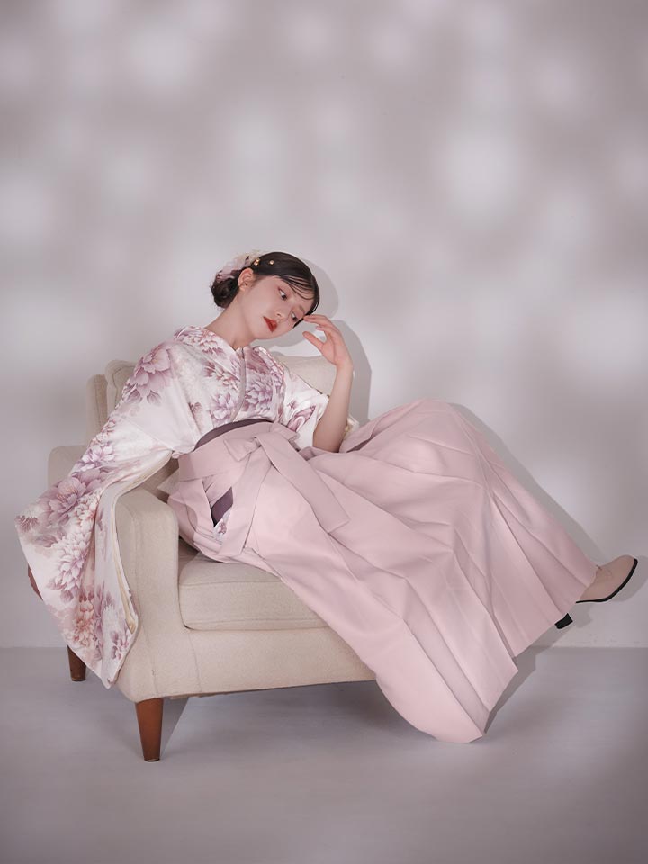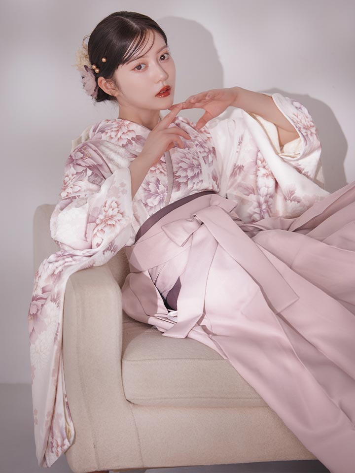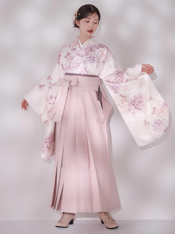 【即日発送】ピンク牡丹×菊 ペールピンク二尺袖着物【卒業袴3点セット 二尺袖着物/帯/袴】 [HR-102-ok-P-F-25EN-251220]
