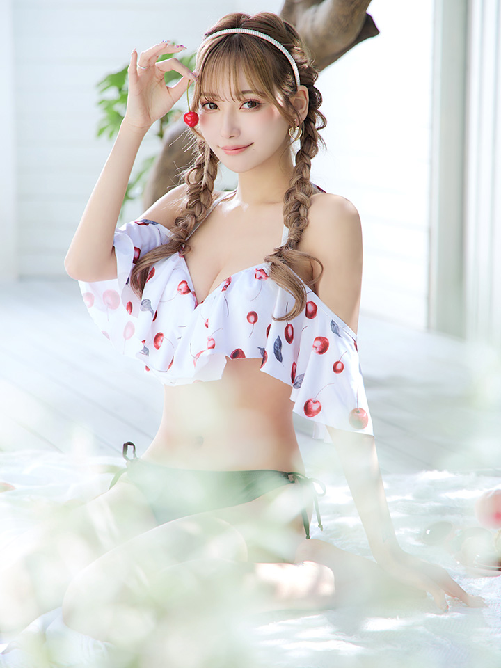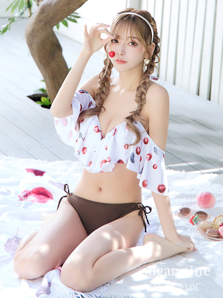 【即日発送】【ビキニ】【水着】フリルショルダーさくらんぼビキニ[YMT]