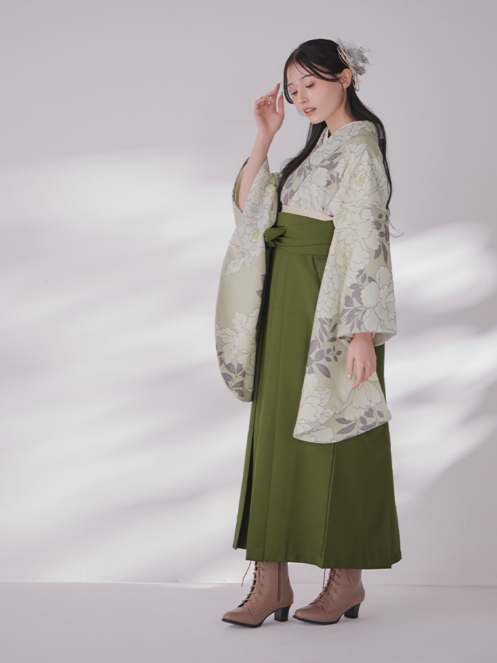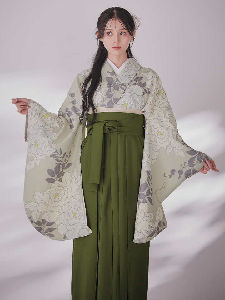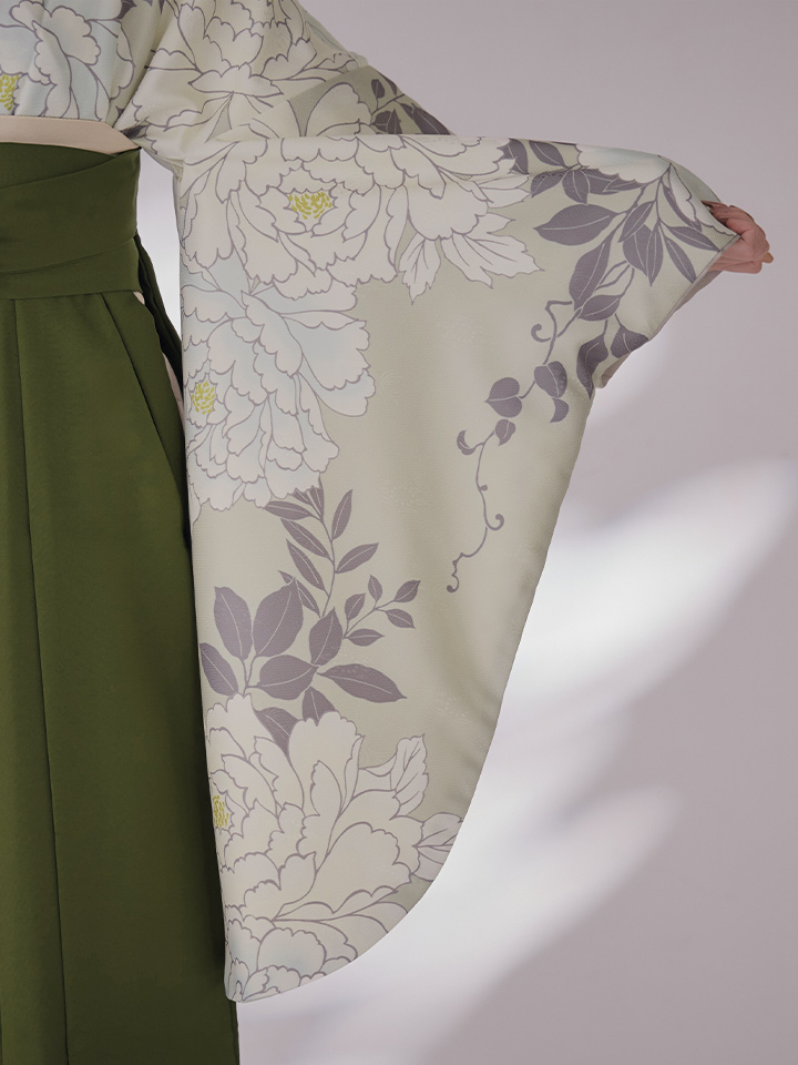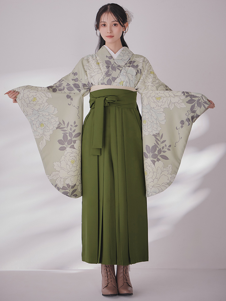 【即日発送】白牡丹 モカ二尺袖着物【卒業袴3点セット 二尺袖着物/帯/袴】 [HR-101-ok-MOC-F-25MU-251220]