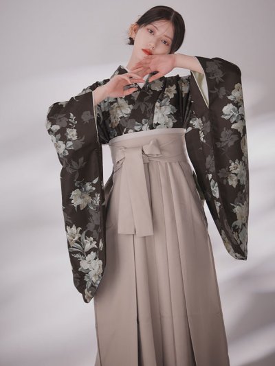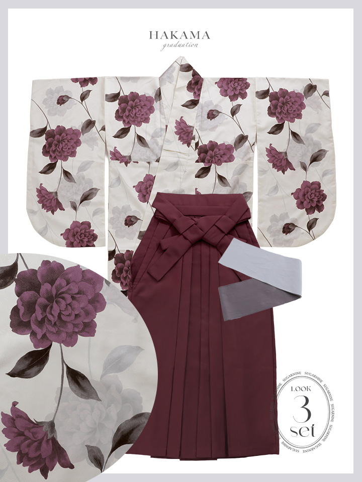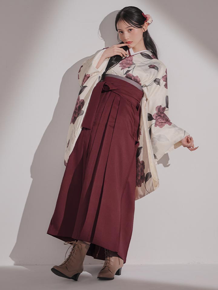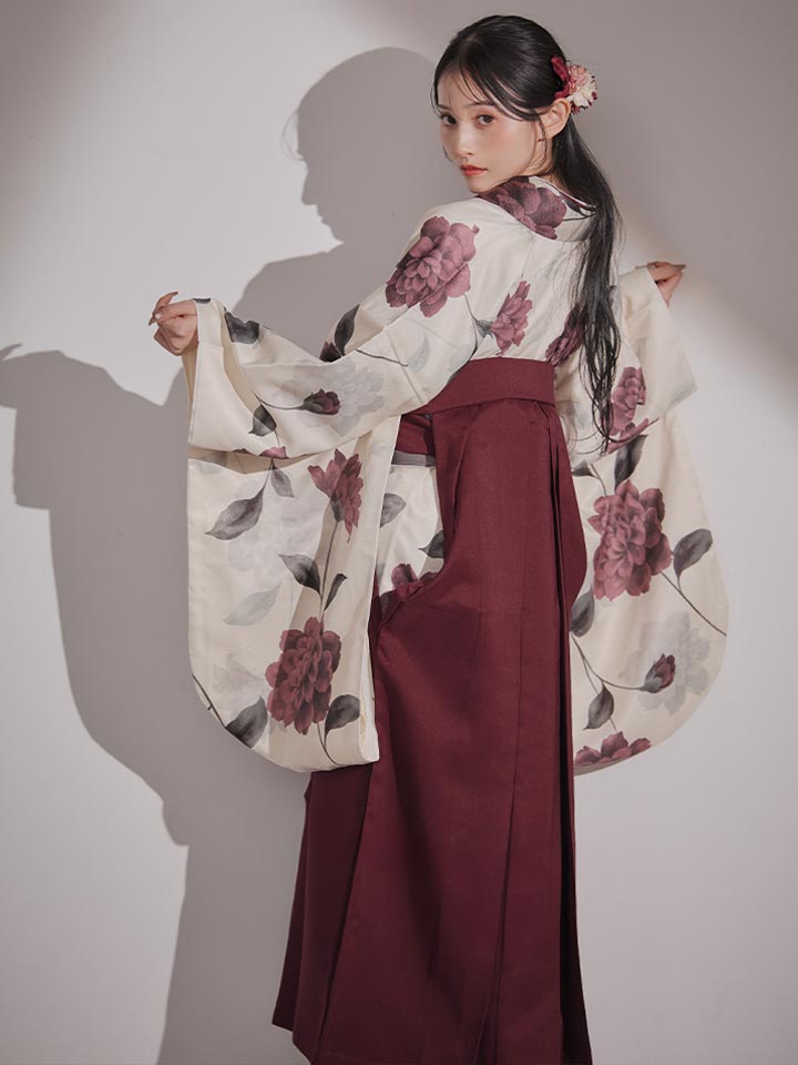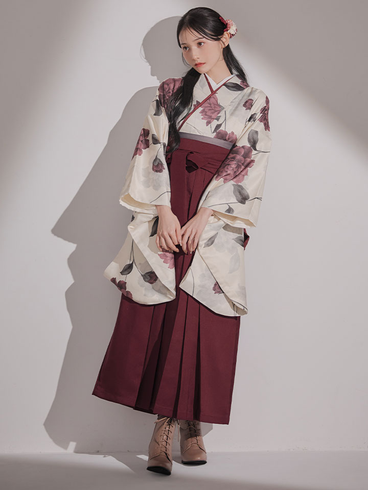 【予約商品 / 1月中旬発送予定】レッドカーネーション ベージュ二尺袖着物【卒業袴3点セット 二尺袖着物/帯/袴】