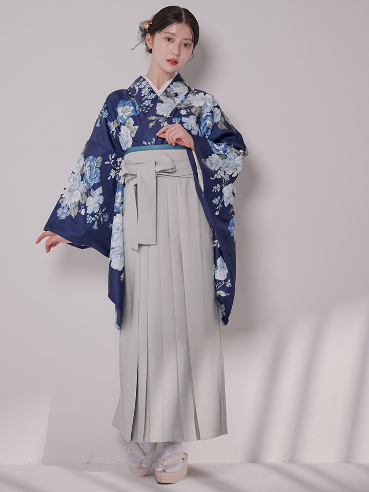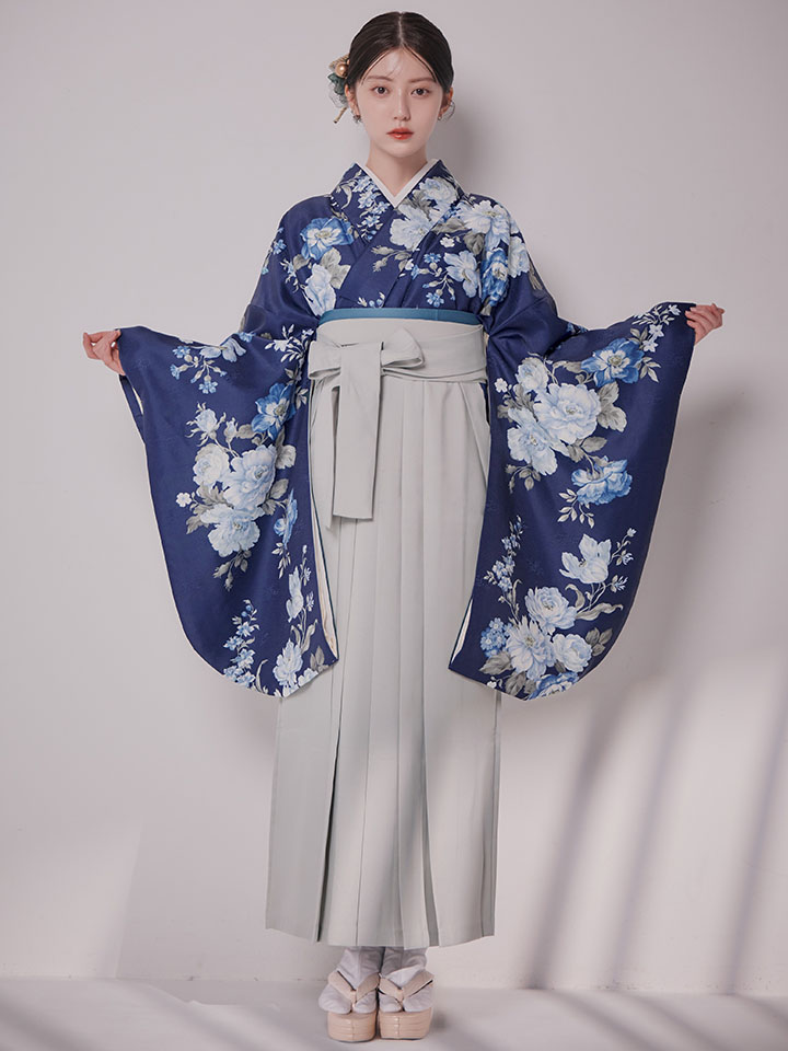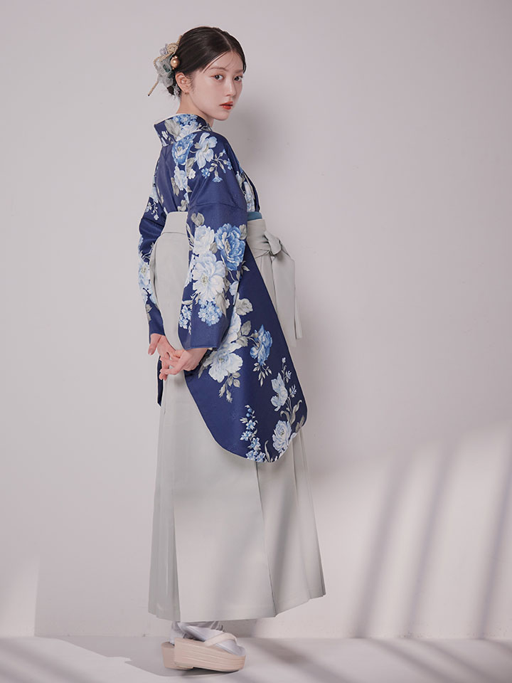 青 ブルー フラワーブーケ グレー袴 ライトグレー袴 灰色袴