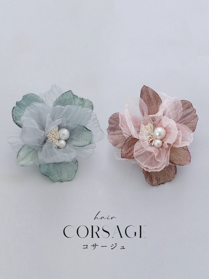 【卒業袴小物】ダスティーフラワーパールコサージュ【2カラー】
