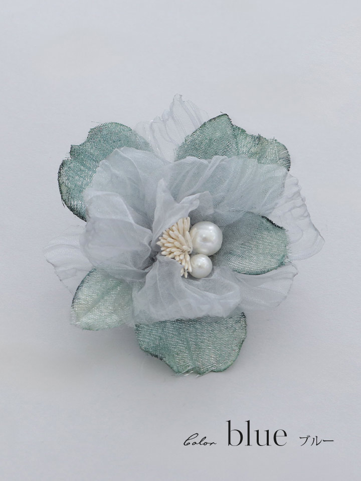 ブルー ピンク パール ダスティー フラワー コサージュ