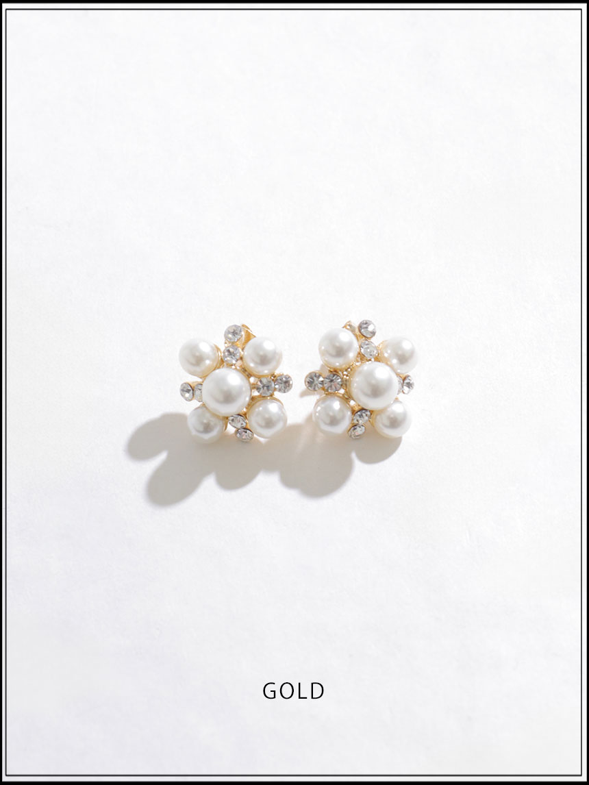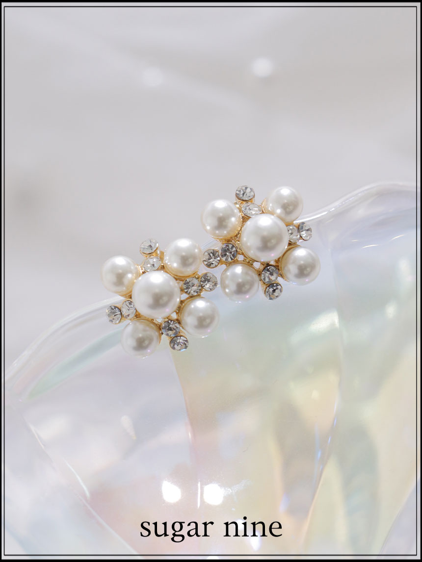 複数のパールとビジューを組み合わせたピアス。