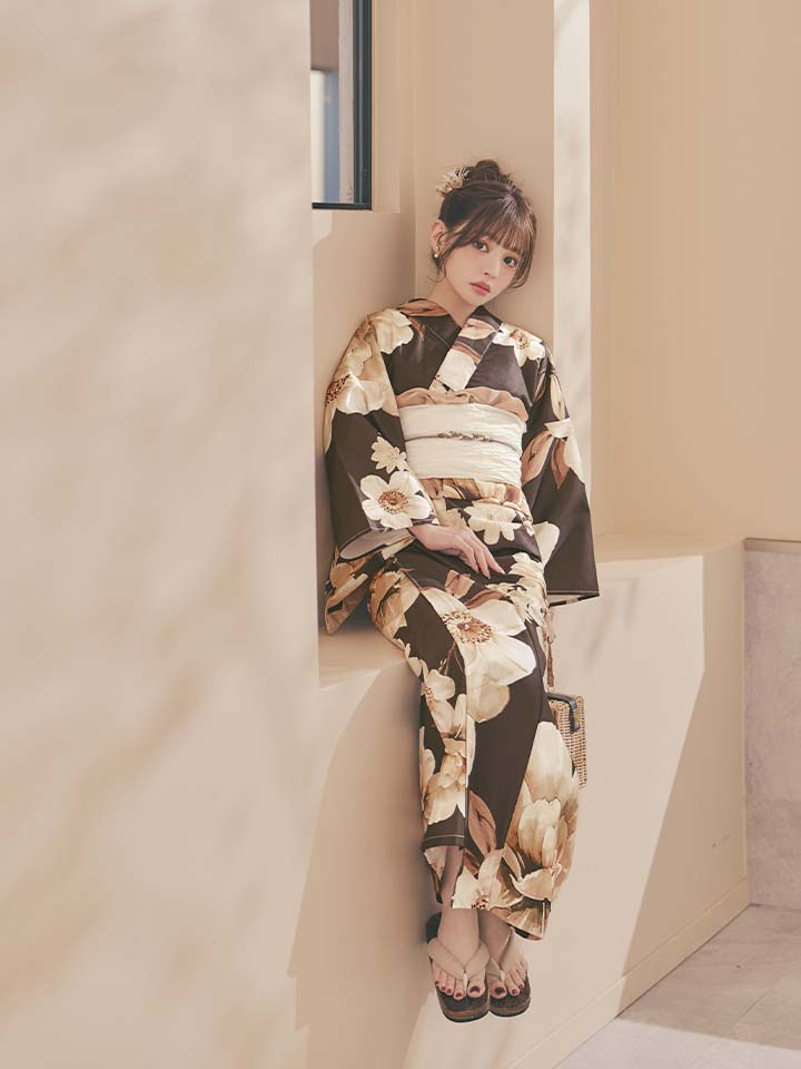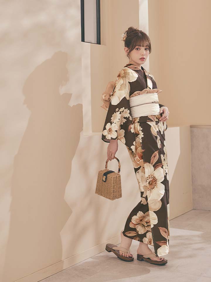 【即日発送】ブラウンエレガントフラワー浴衣【浴衣3点セット 浴衣/帯/下駄】[OF04] [Y-9372-sb-dzjm-BR-F-26PO-260305]
