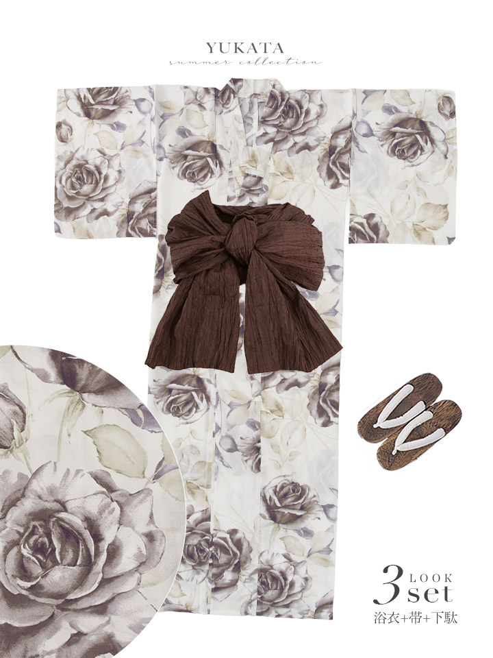 【即日発送】エクリュアンティークローズ浴衣【浴衣3点セット 浴衣/帯/下駄】[OF04] [Y-9303-kj-BR-F-26PO-260305]