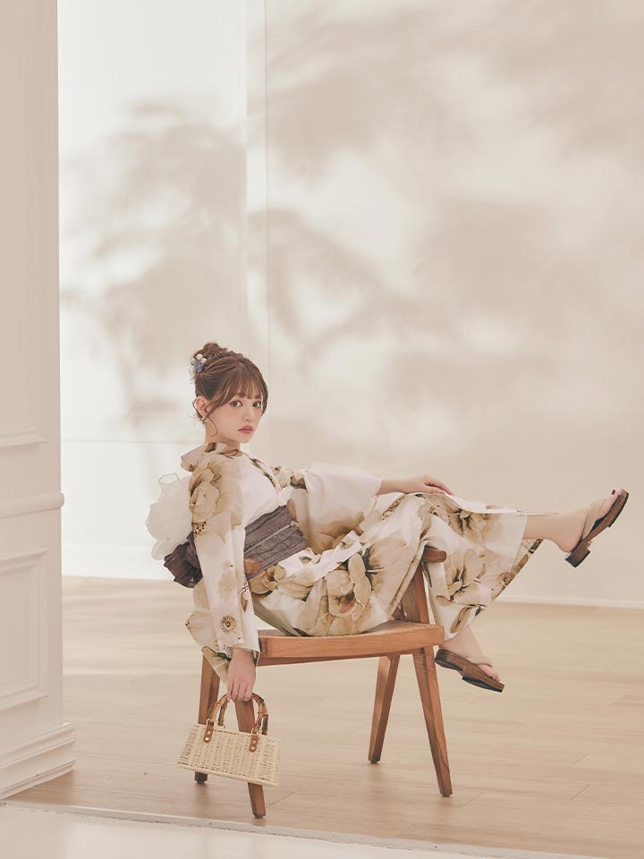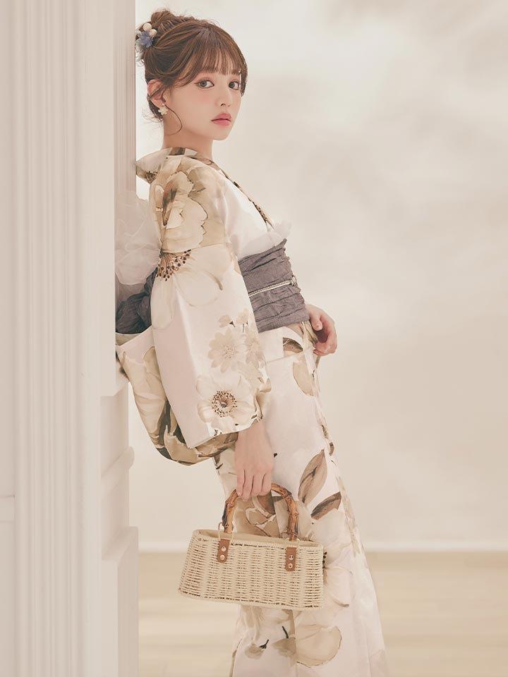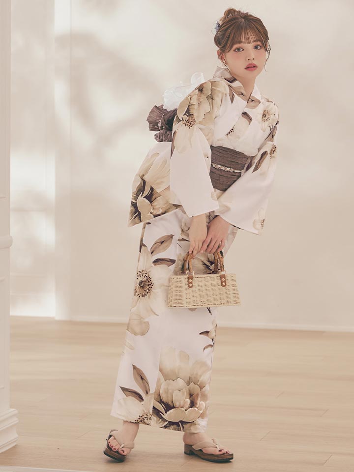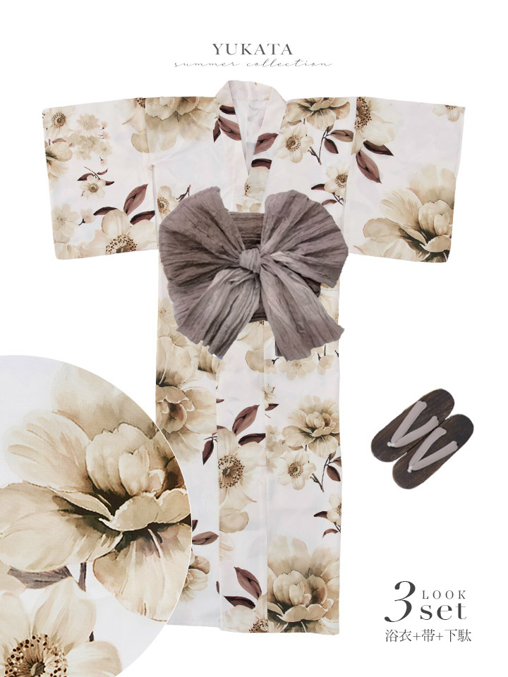 【即日発送】ホワイトエレガントフラワー浴衣【浴衣3点セット 浴衣/帯/下駄】[OF04] [Y-9373-sb-dzjm-W-F-26PO-260305]