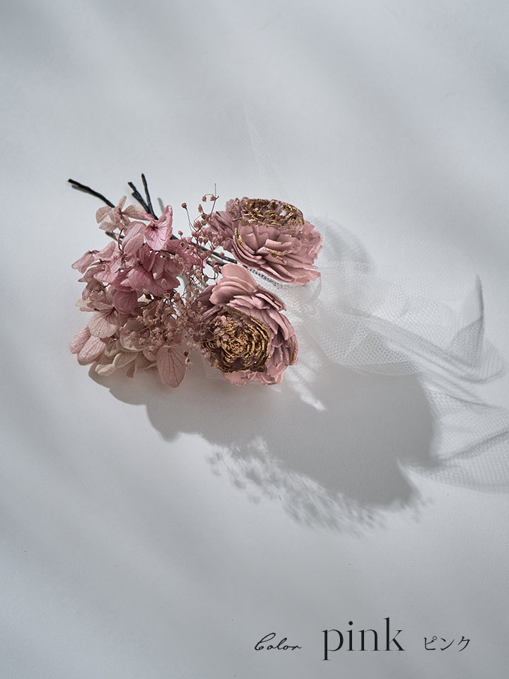 柔らかな色合いが魅力のくすみカラーでまとめたコサージュセット。