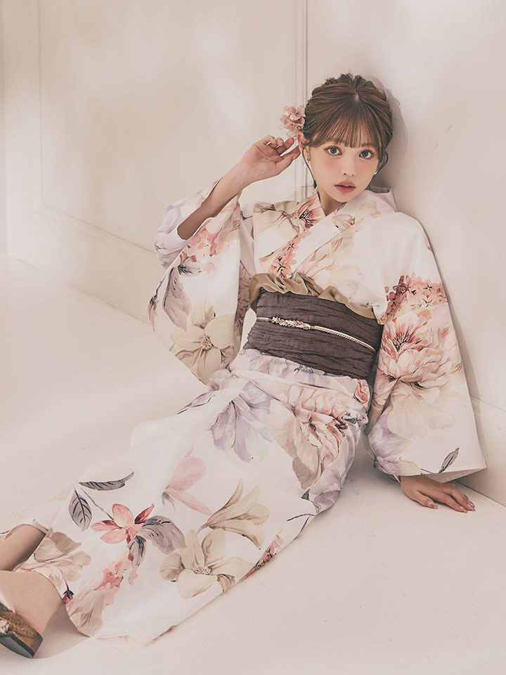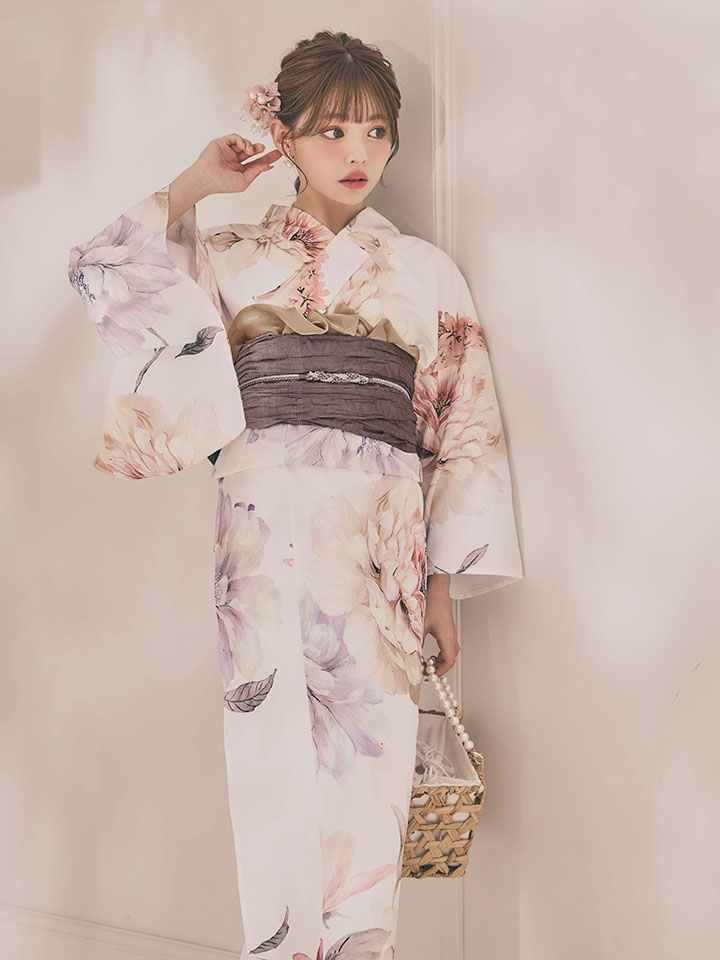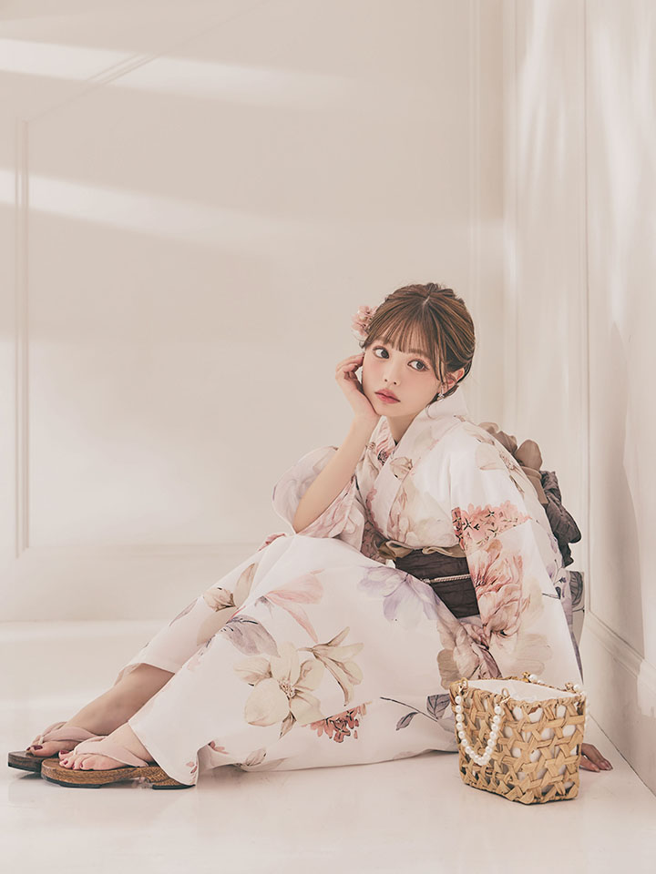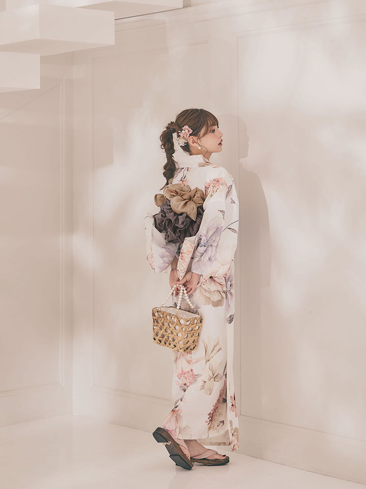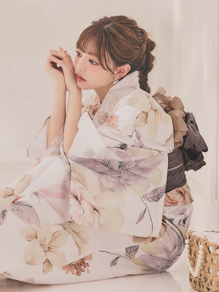 パステルフラワーを散りばめた軽やかな浴衣