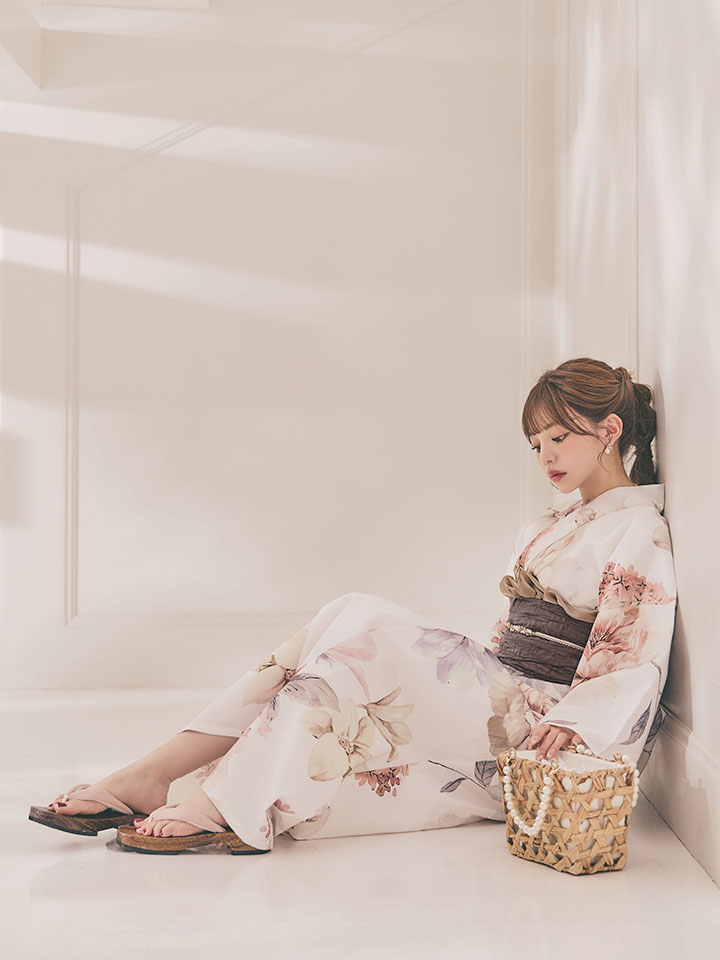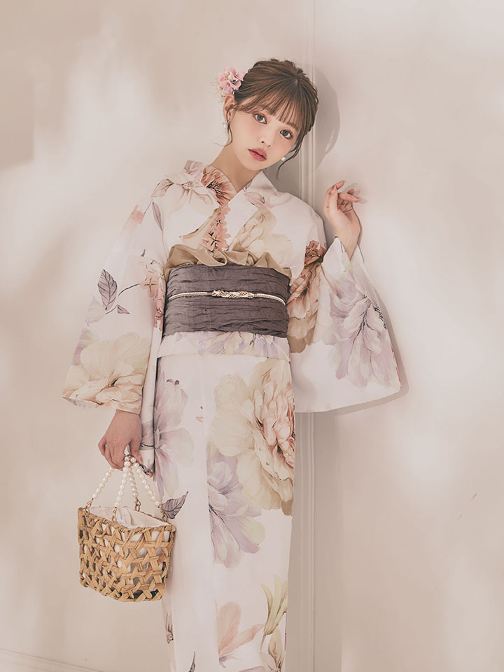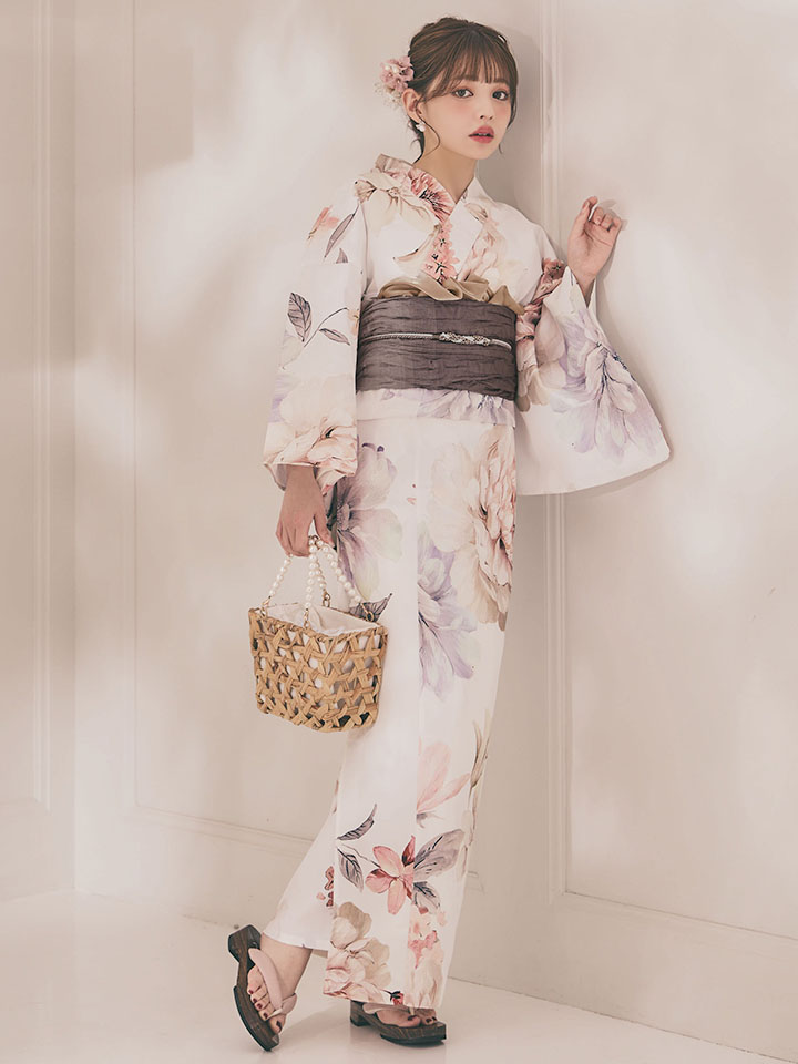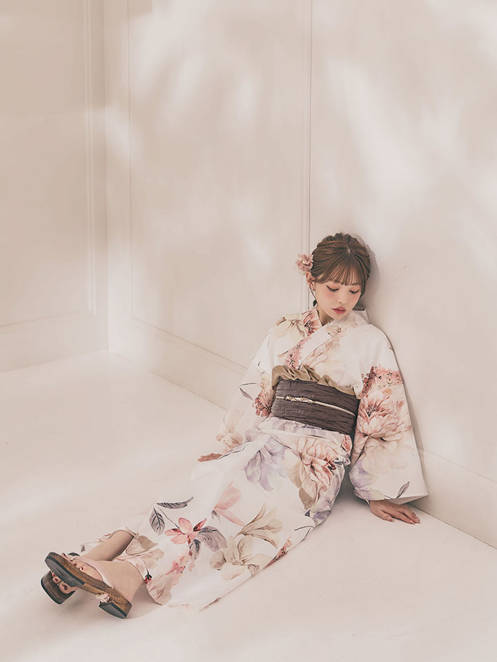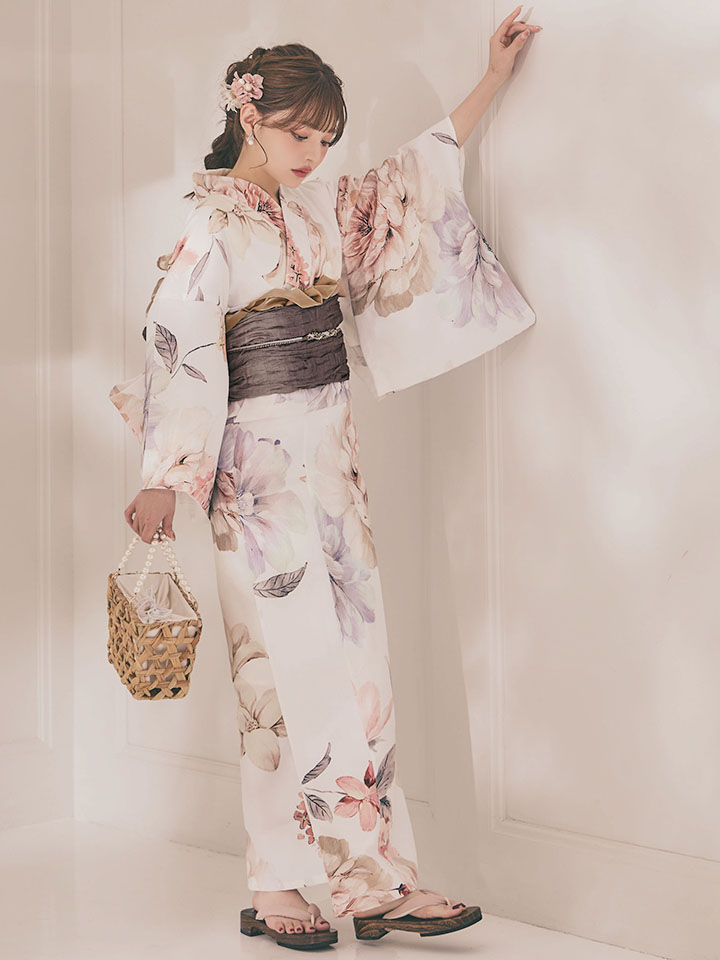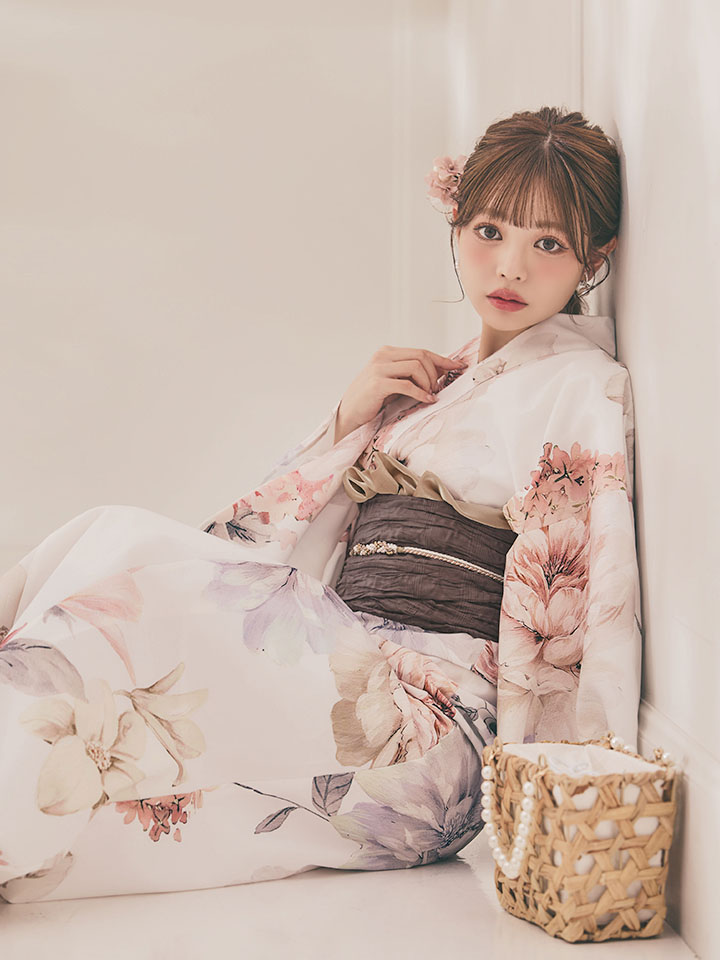 パステルフラワーを散りばめた軽やかな浴衣