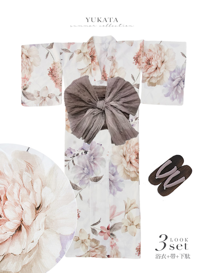 【即日発送】パステルミックス×ホワイト浴衣【浴衣3点セット 浴衣/帯/下駄】[OF04] [Y-9370-sb-dzm-W-F-26PO-260327]