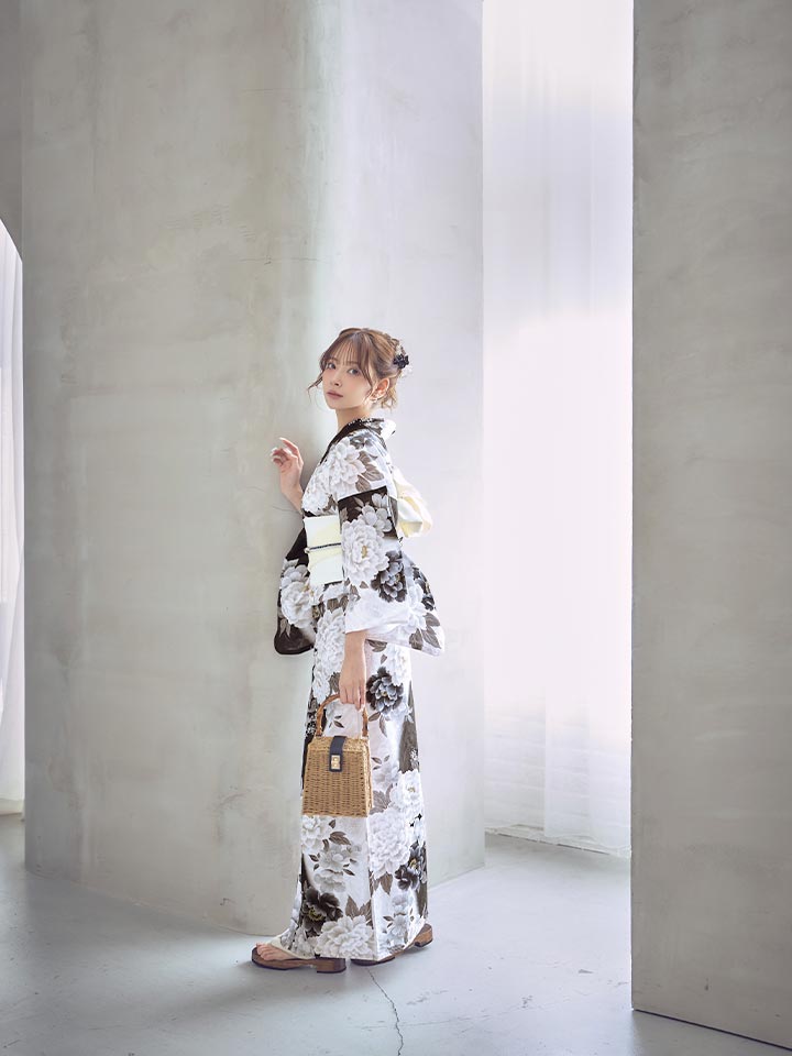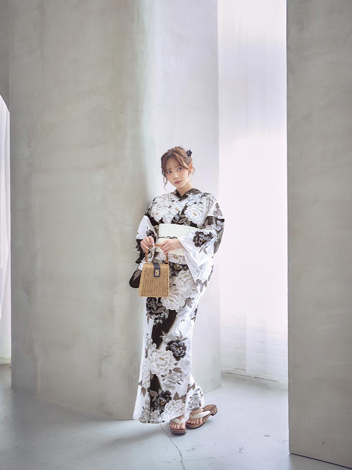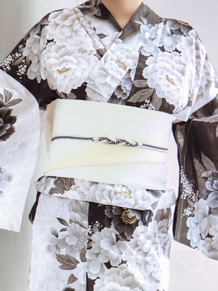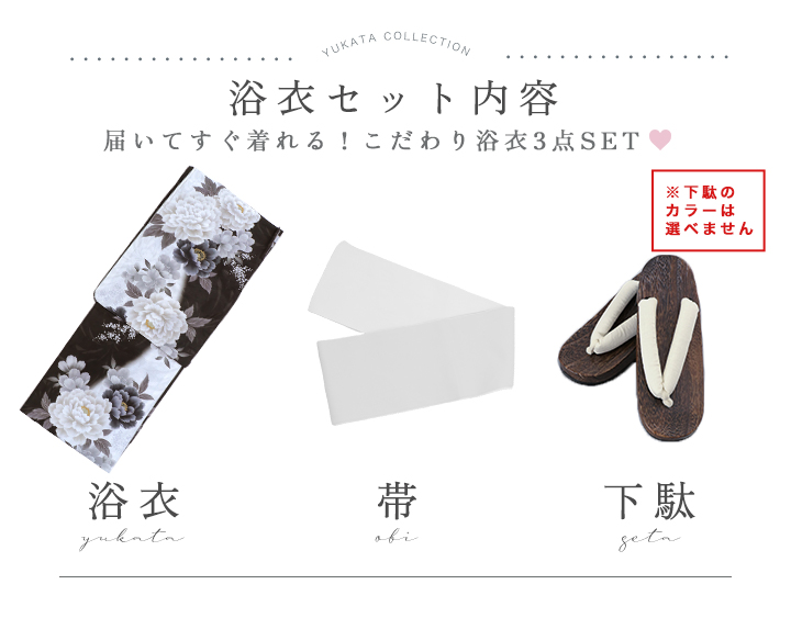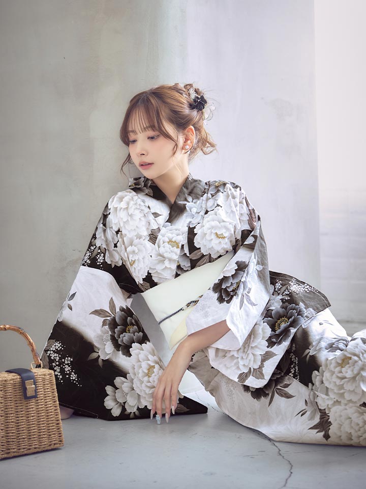 【即日発送】モノトーン牡丹【浴衣3点セット 浴衣/帯/下駄】[OF04]