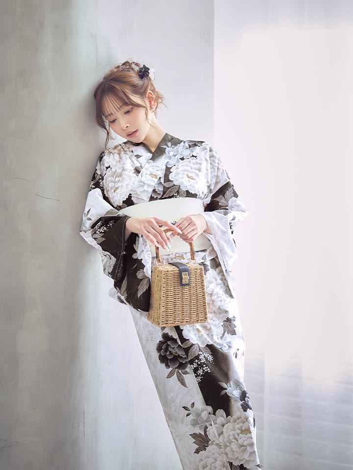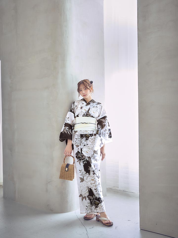 【即日発送】モノトーン牡丹【浴衣3点セット 浴衣/帯/下駄】[OF04] [Y-9417-ok-WxB-F-26PY-260404]