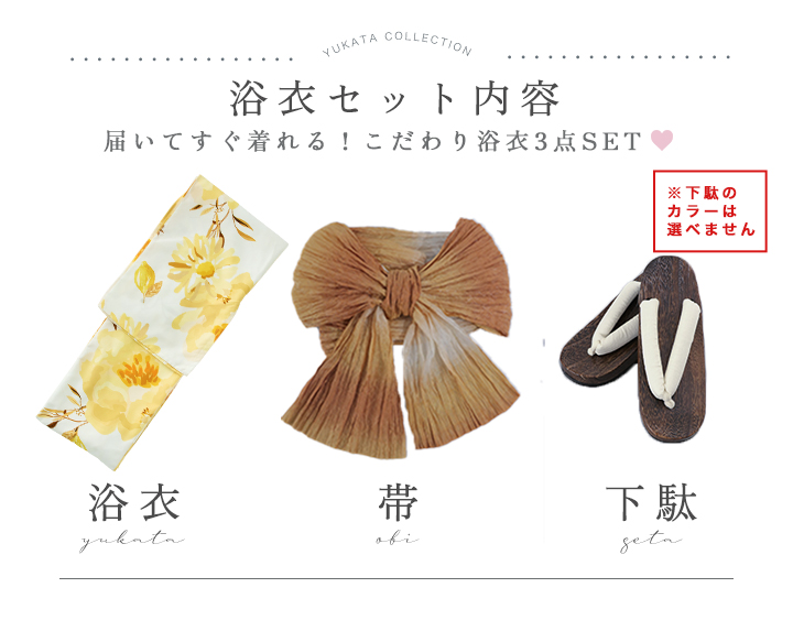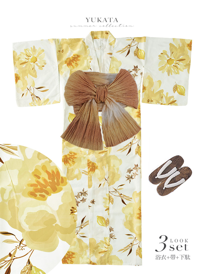 【即日発送】イエローブロッサム浴衣【浴衣3点セット 浴衣/帯/下駄】[OF04] [Y-9377-sb-dzm-Y-F-26YI-260404]