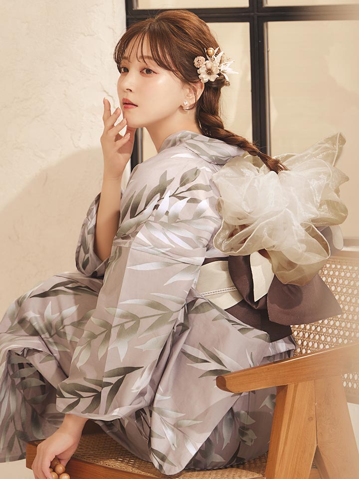 【即日発送】ブラウンリーフデザイン浴衣【浴衣3点セット 浴衣/帯/下駄】[OF04] [Y-9306-kj-BR-F-26MR-260410]