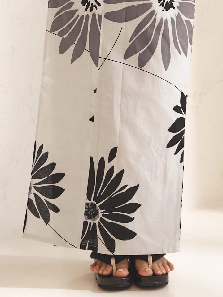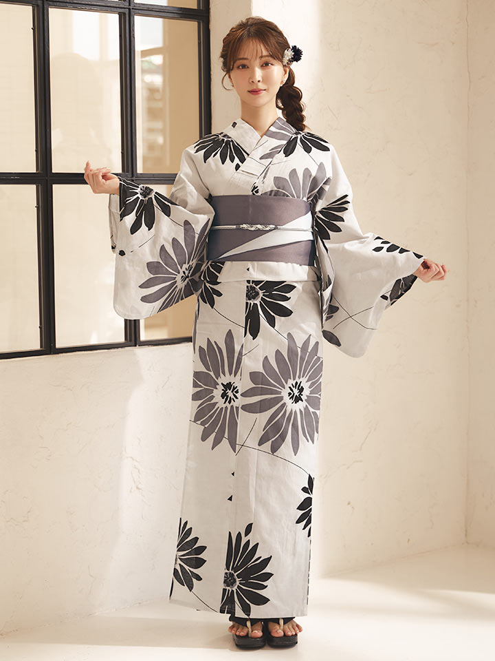ベージュカラーに、マーガレットの花をあしらった大人浴衣。