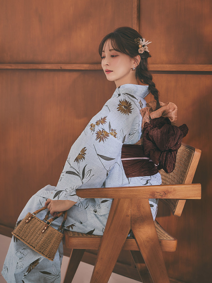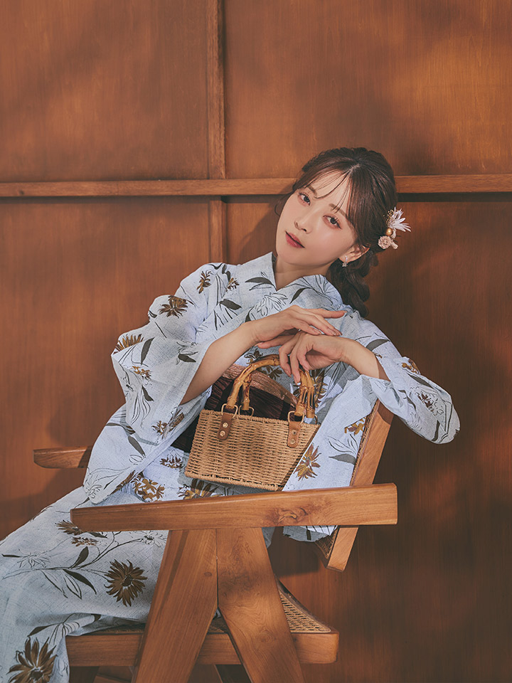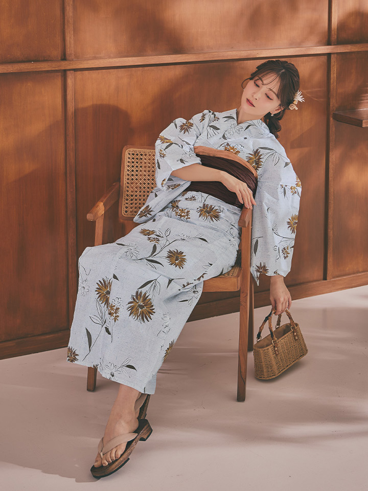 【即日発送】グレー地×マーガレット浴衣 【浴衣3点セット 浴衣/帯/下駄】 [FB02] [Y-8003-kj-GY-F-26MR-260410]