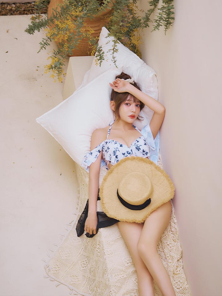 周囲と差がつくオリジナル小花柄のトレンド水着。