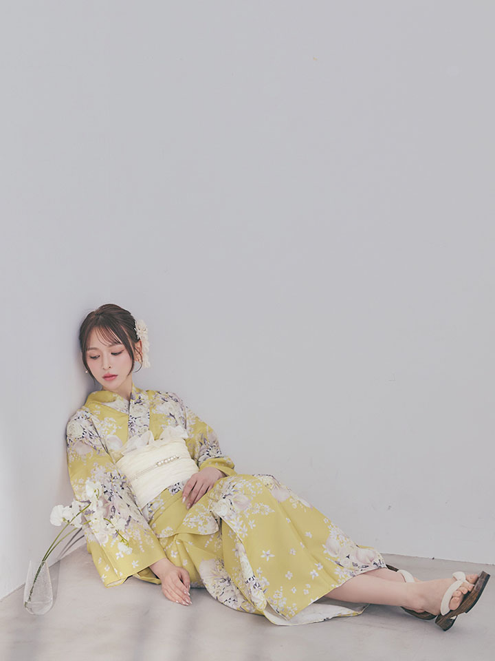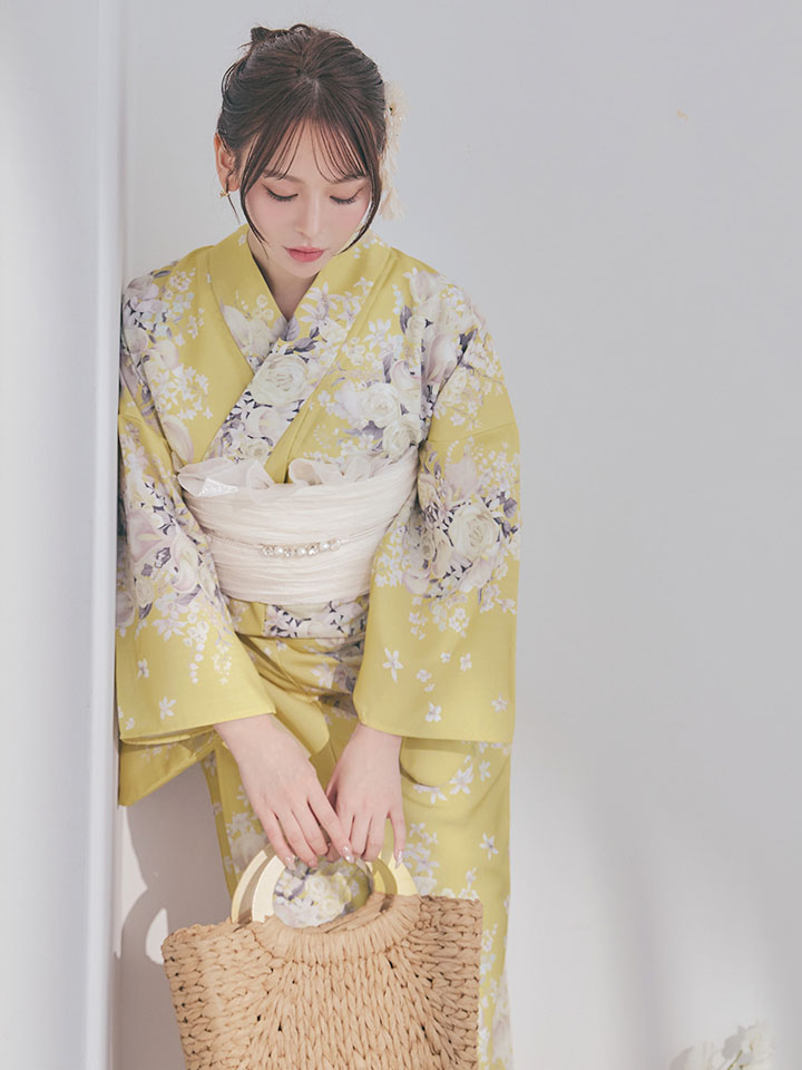 送料無料!【即日発送】マスタードフラワー浴衣【浴衣3点セット 浴衣/帯/下駄】[OF04] [Y-9419-ok-Y-F-26IE-260417]