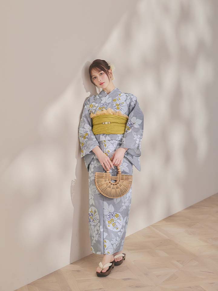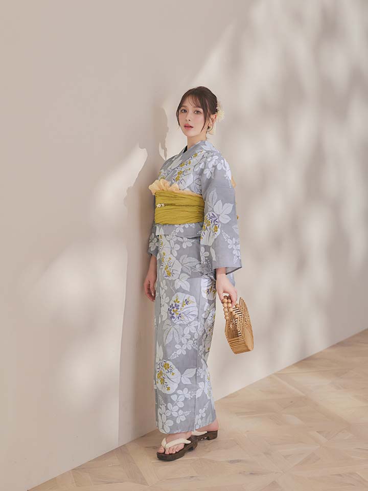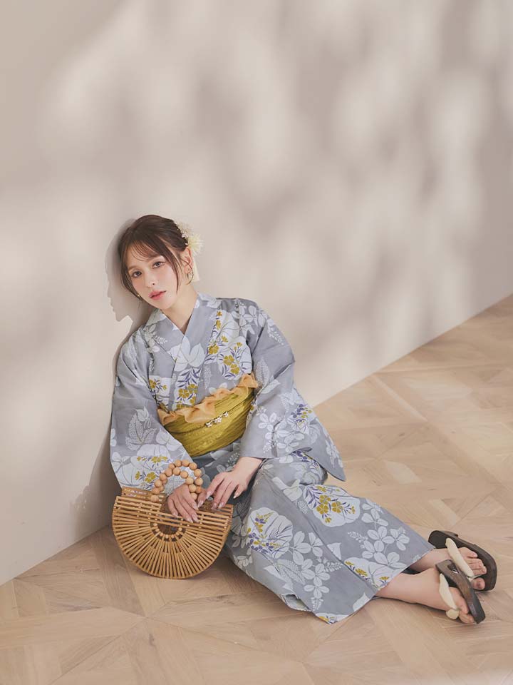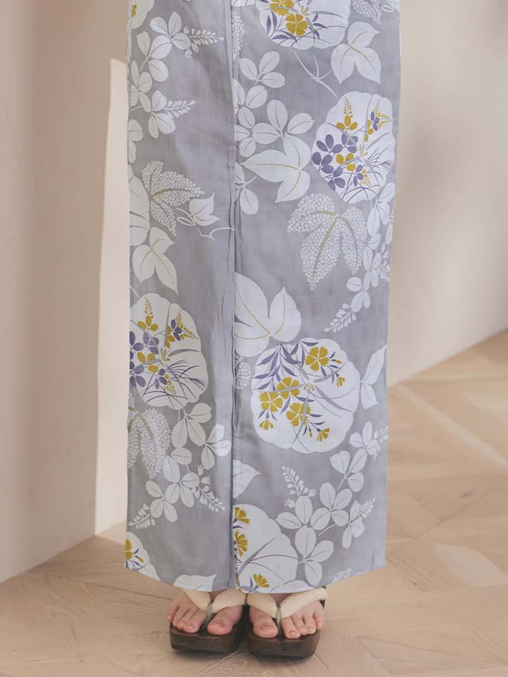 【即日発送】グレー×フラワー浴衣 【浴衣3点セット 浴衣/帯/下駄】 [OF04] [Y-8086-ok-GY-F-26IE-260417]