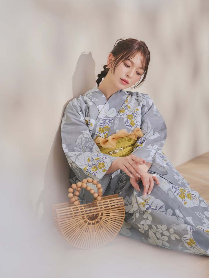 グレー地に小柄の愛らしい花々が散りばめられた大人可愛い夏浴衣♥