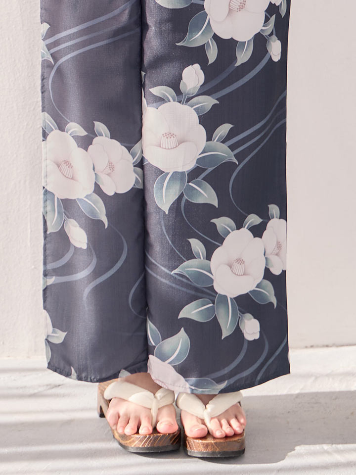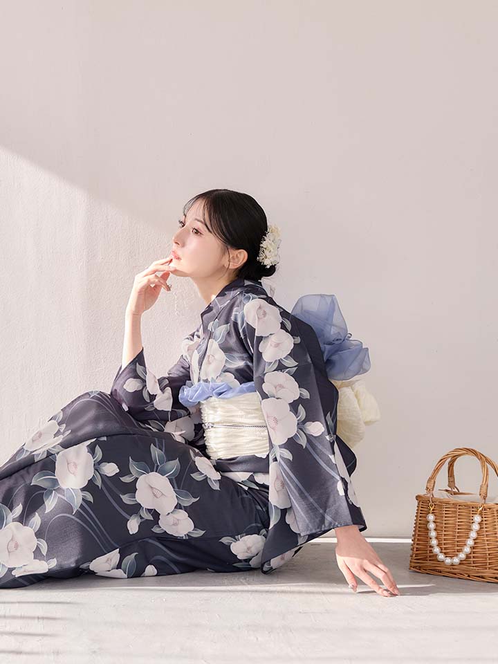 送料無料!ネイビーx白椿浴衣【浴衣3点セット 浴衣/帯/下駄】[OF04]【予約 / 6月上旬発送予定】