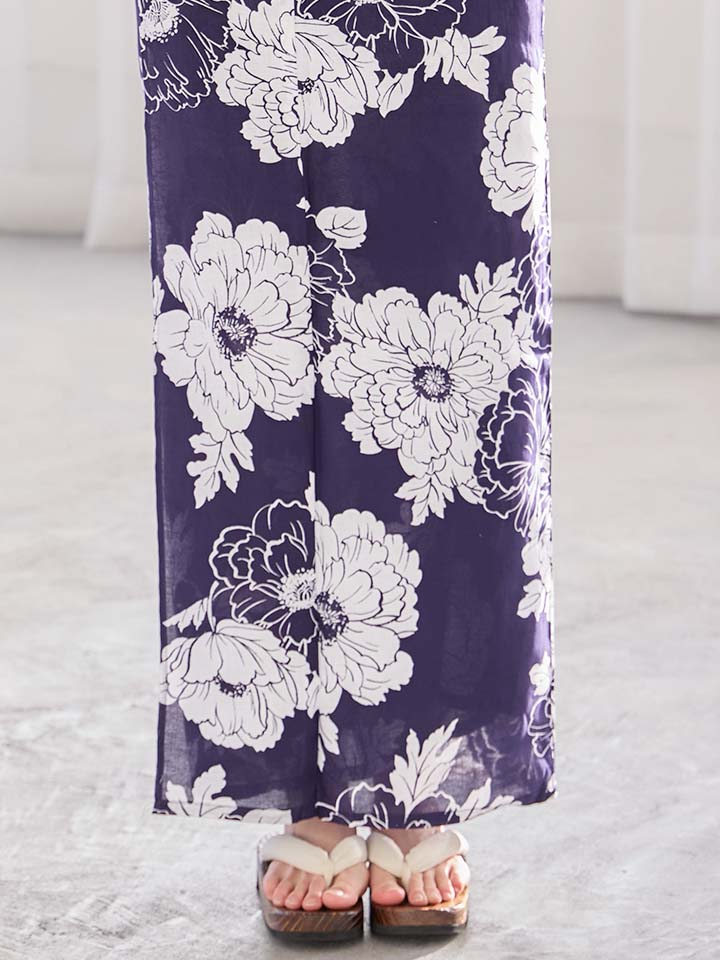 【即日発送】スタイリッシュ牡丹モダン浴衣【浴衣3点セット 浴衣/帯/下駄】[OF04] [Y-9229-kj-NV-F-26MU-260420]