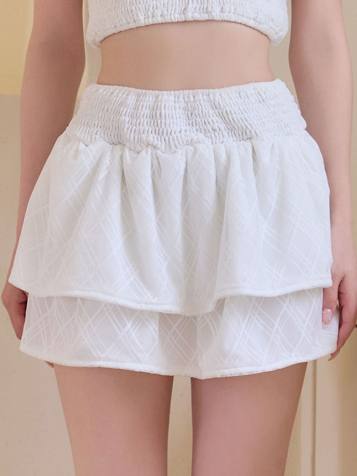 2段フリルのスカートが軽やかに揺れ、可愛らしさとフェミニンさをプラスしま