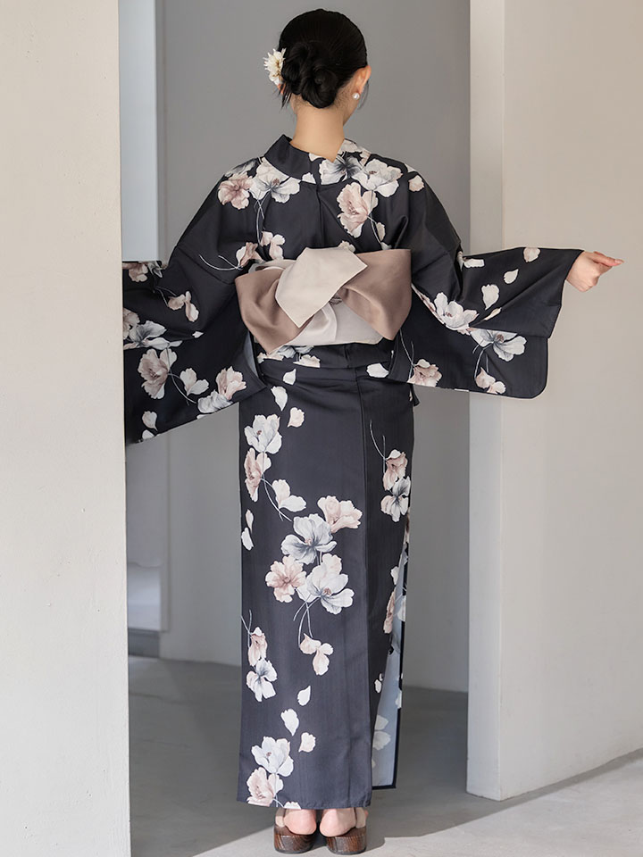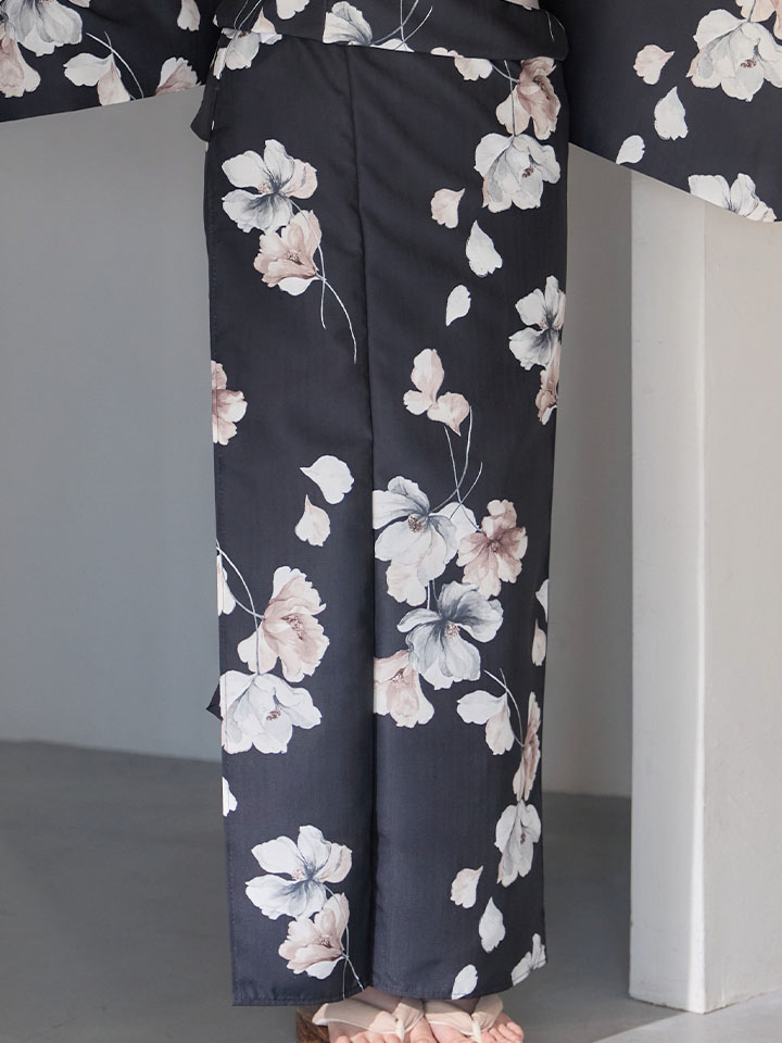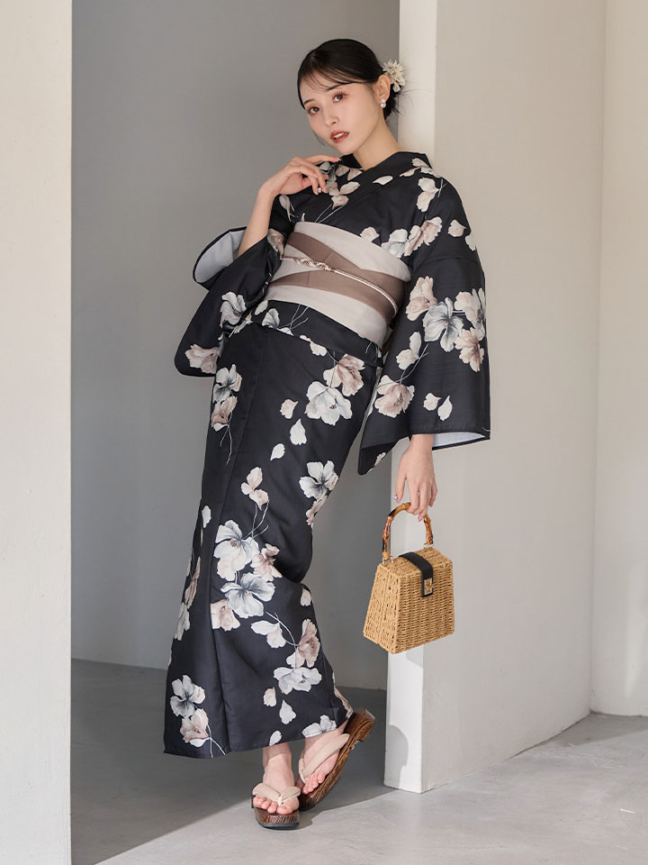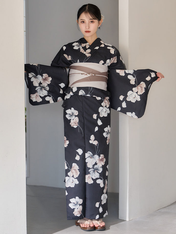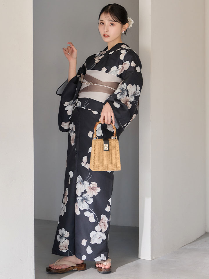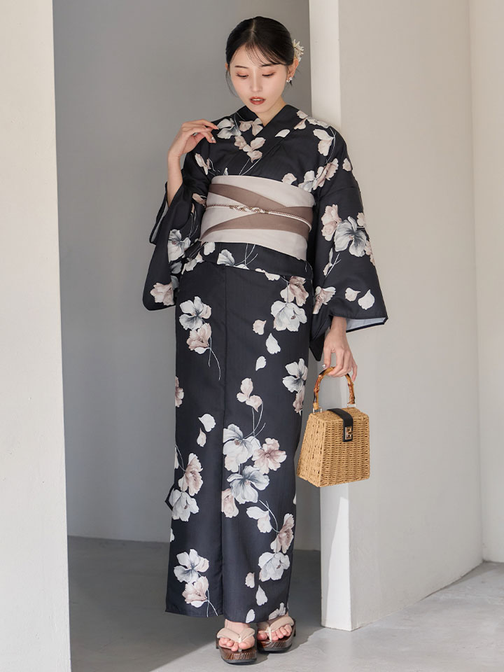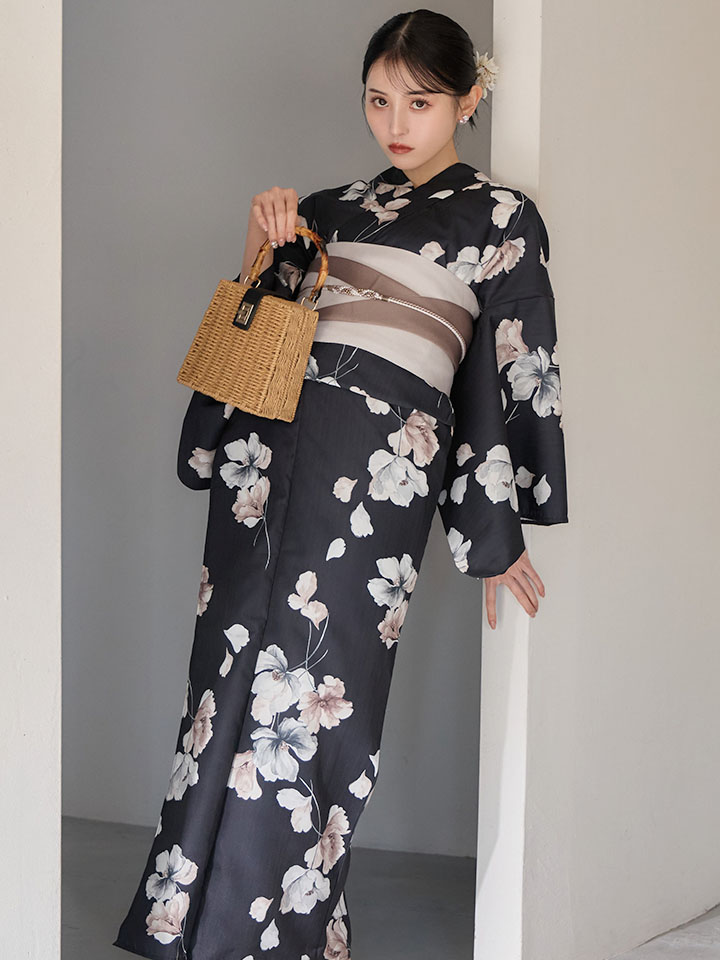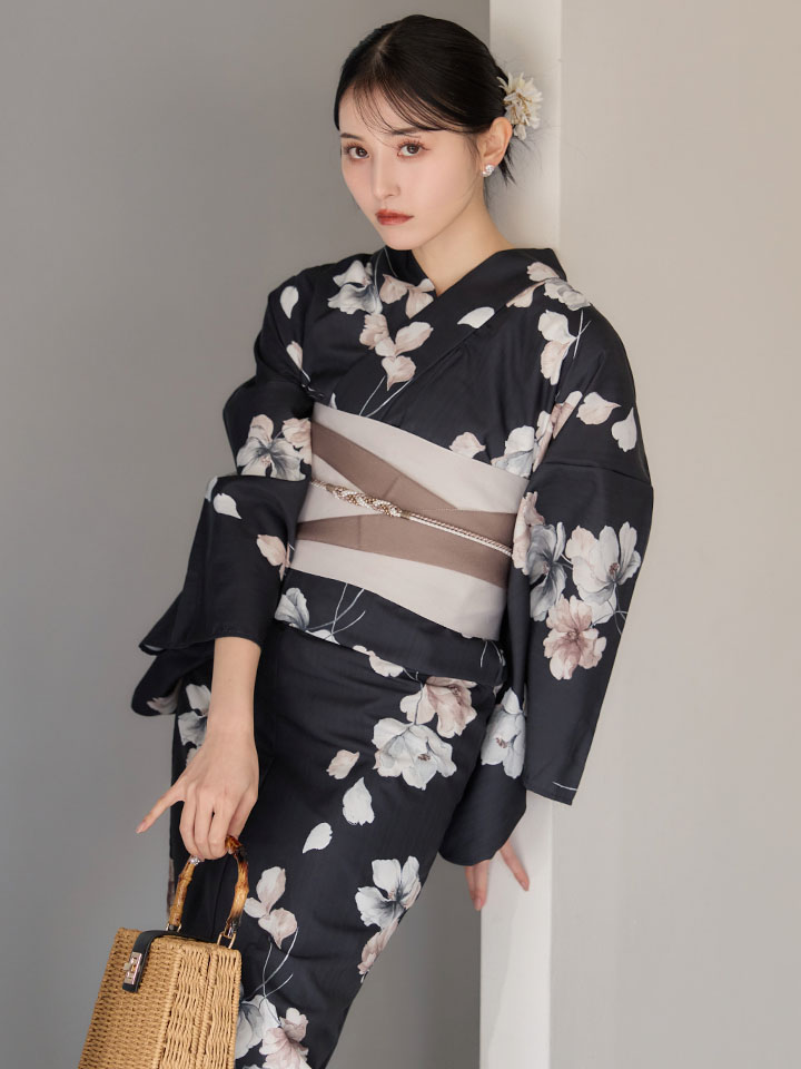 送料無料!【即日発送】フローラルブラック浴衣【浴衣3点セット 浴衣/帯/下駄】[OF04] [Y-9421-ok-B-F-26MU-260422]