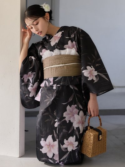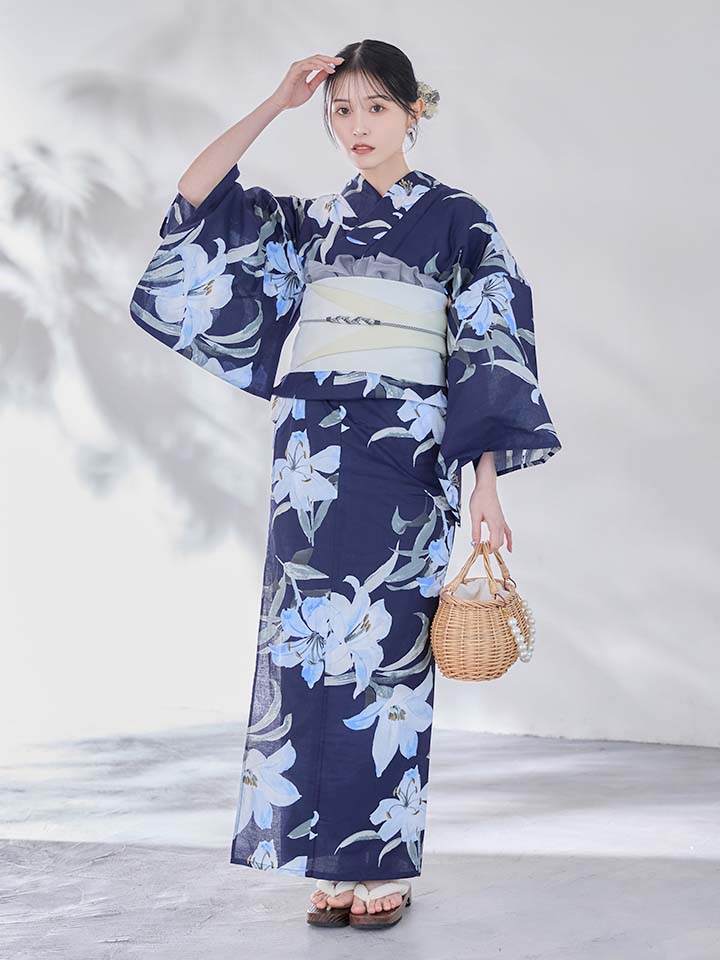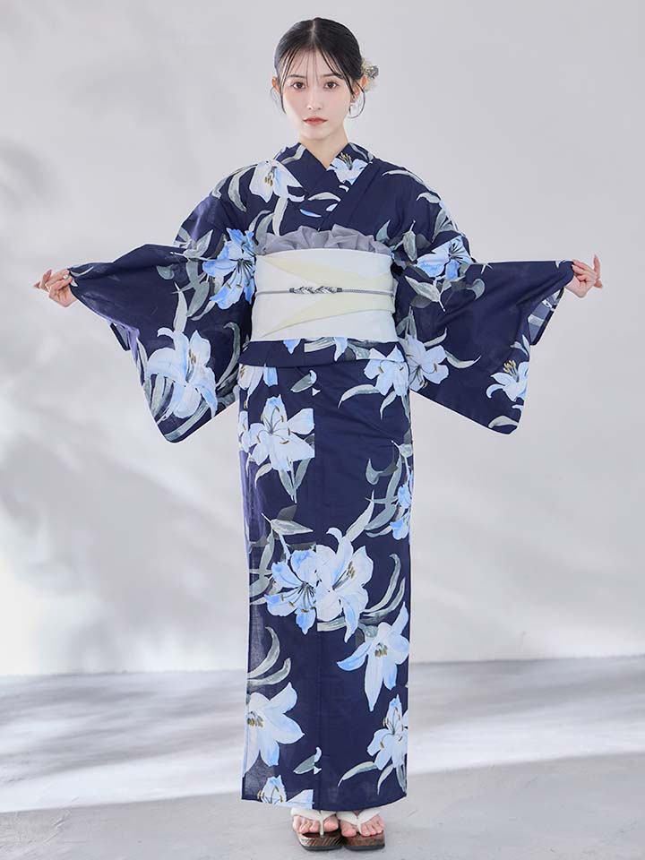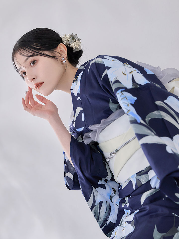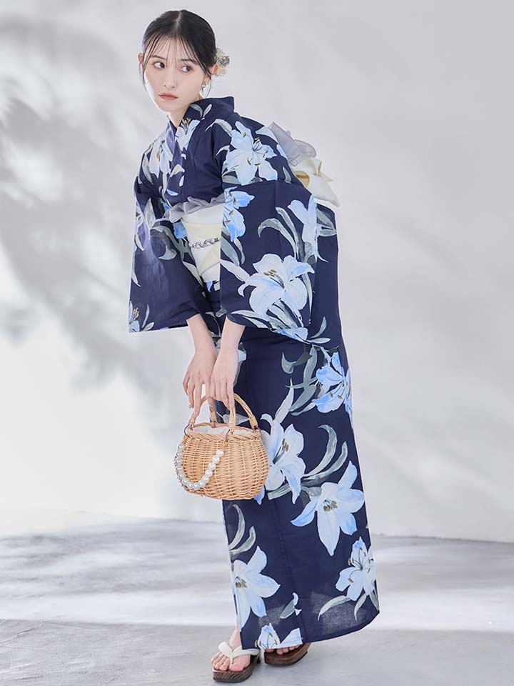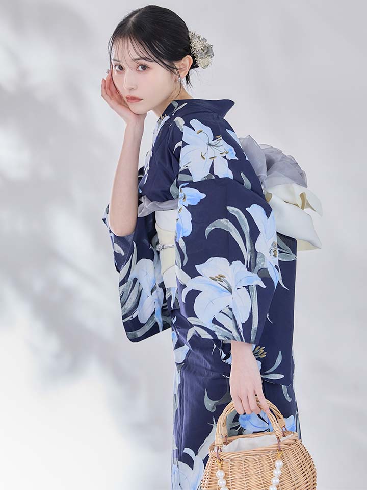 爽やかに咲く百合をあしらった浴衣。