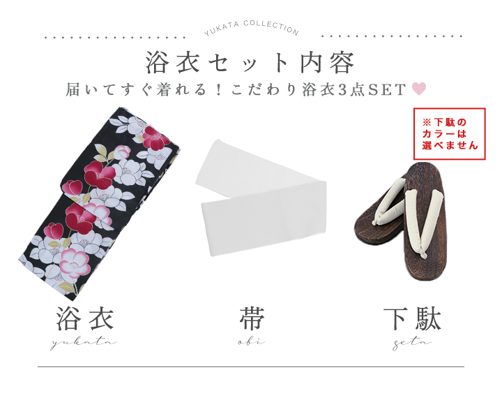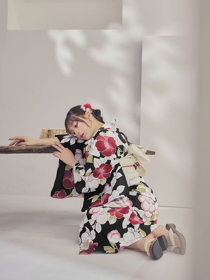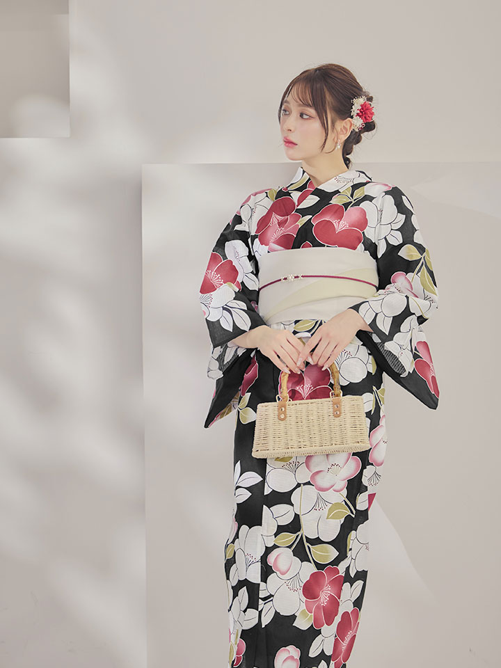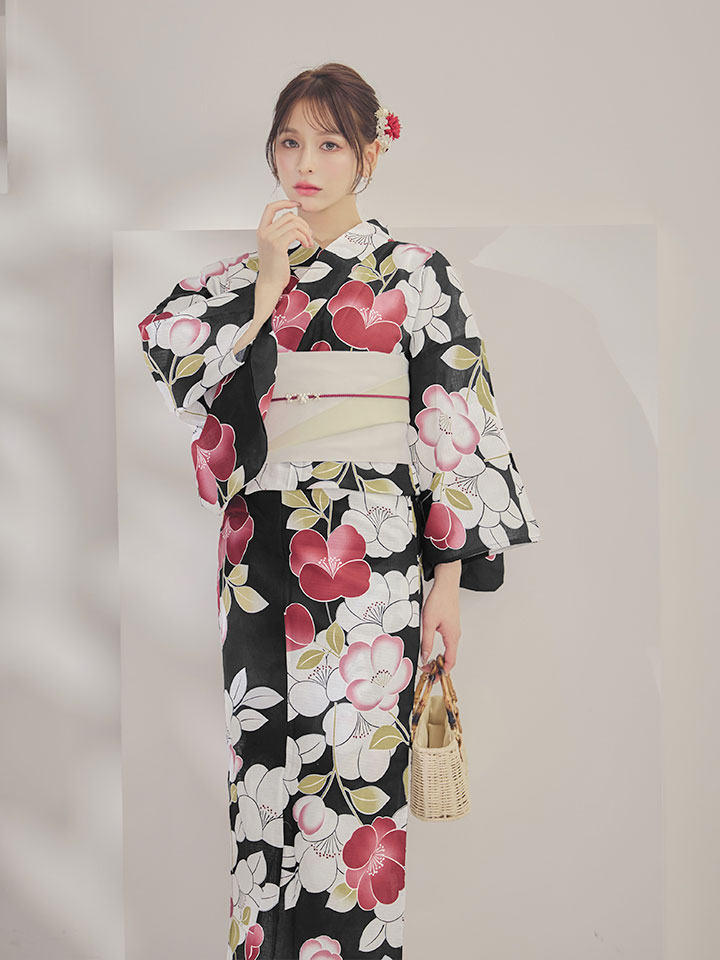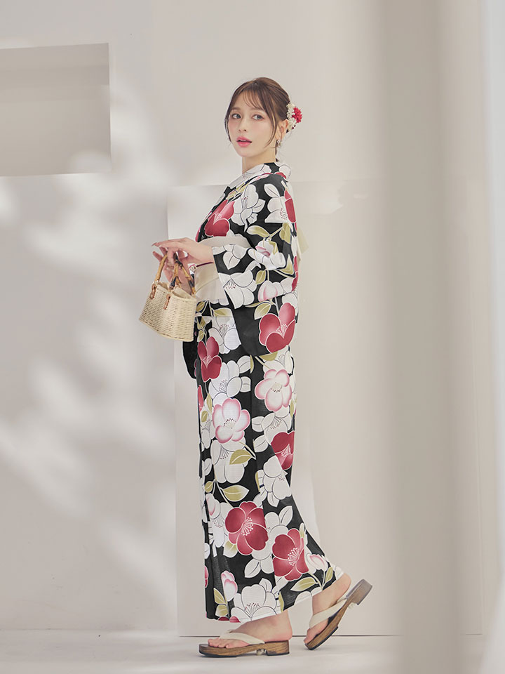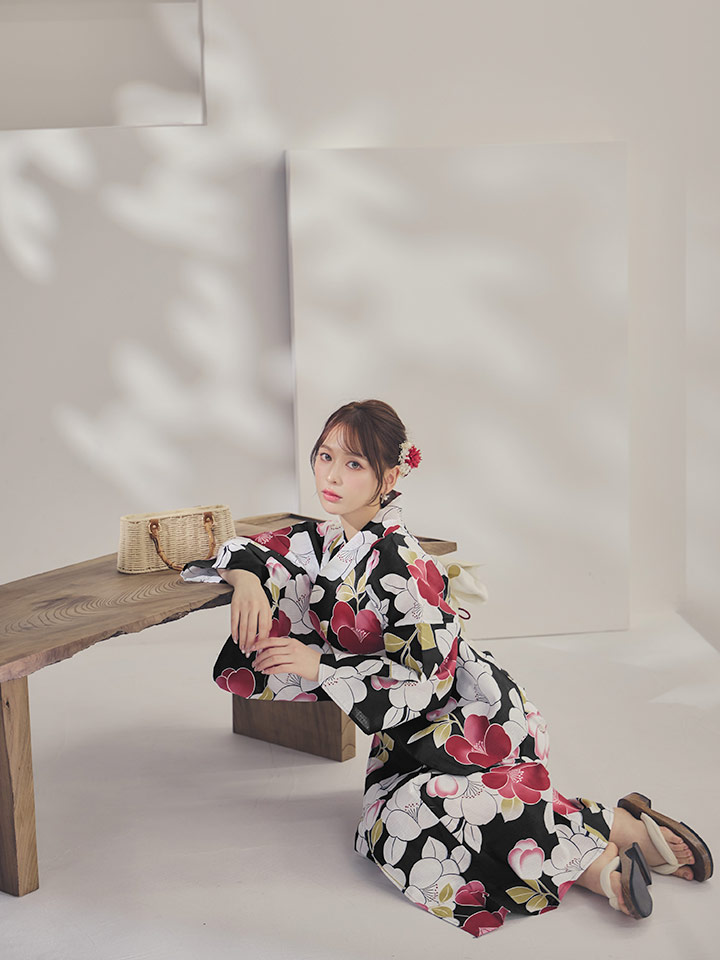 【即日発送】紅梅ブラック浴衣【浴衣3点セット 浴衣/帯/下駄】[OF04] [Y-9410-ok-B-F-26IE-260427]