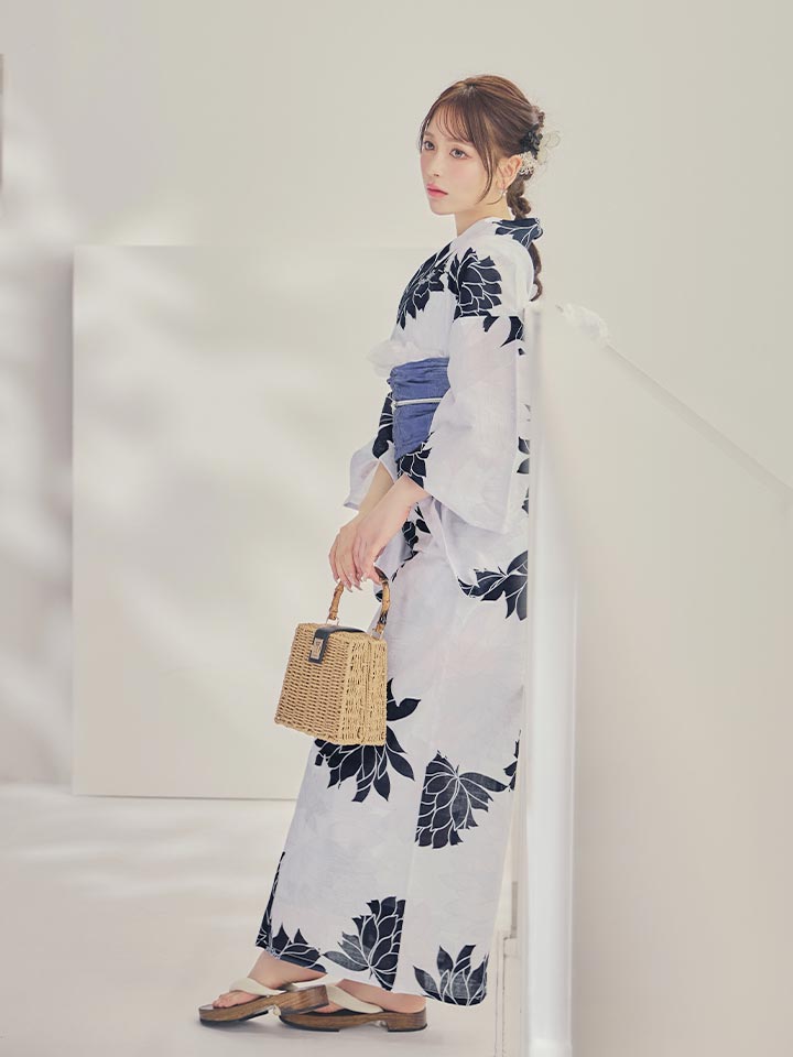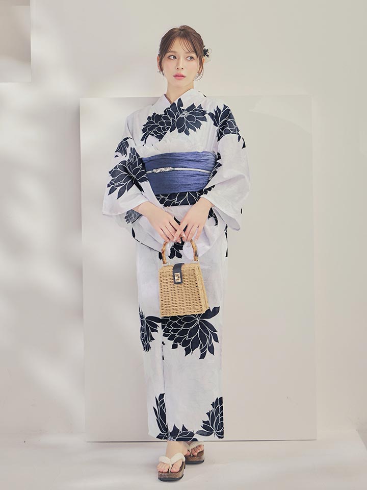 送料無料!【即日発送】モノトーンダリア柄浴衣【浴衣3点セット 浴衣/帯/下駄】[OF04] [Y-9144-wk-W-F-26IE-260427]