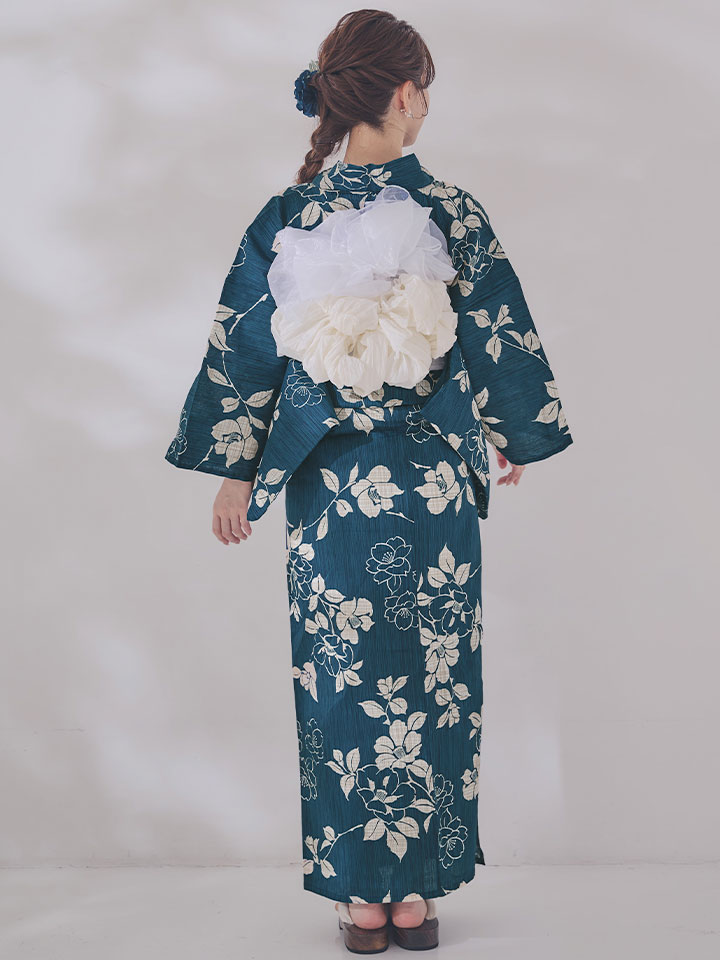 【即日発送】藍色椿桜柄浴衣 【浴衣3点セット 浴衣/帯/下駄】 [OF04] [Y-9145-wk-BLGR-F-26MR-260427]