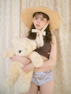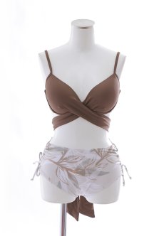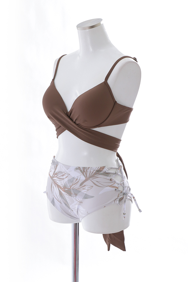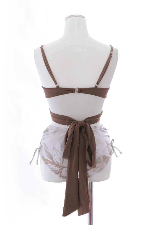 【即日発送】【水着セール】【ビキニ】【水着】リーフ柄バッククロスリボンビキニ/ハイウエスト[YMT]