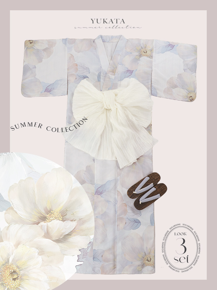 【即日発送】アイシーフラワー牡丹浴衣 【浴衣3点セット 浴衣/帯/下駄】 [YMT] [Y-8044-nz-dzi-W-F-24RC]