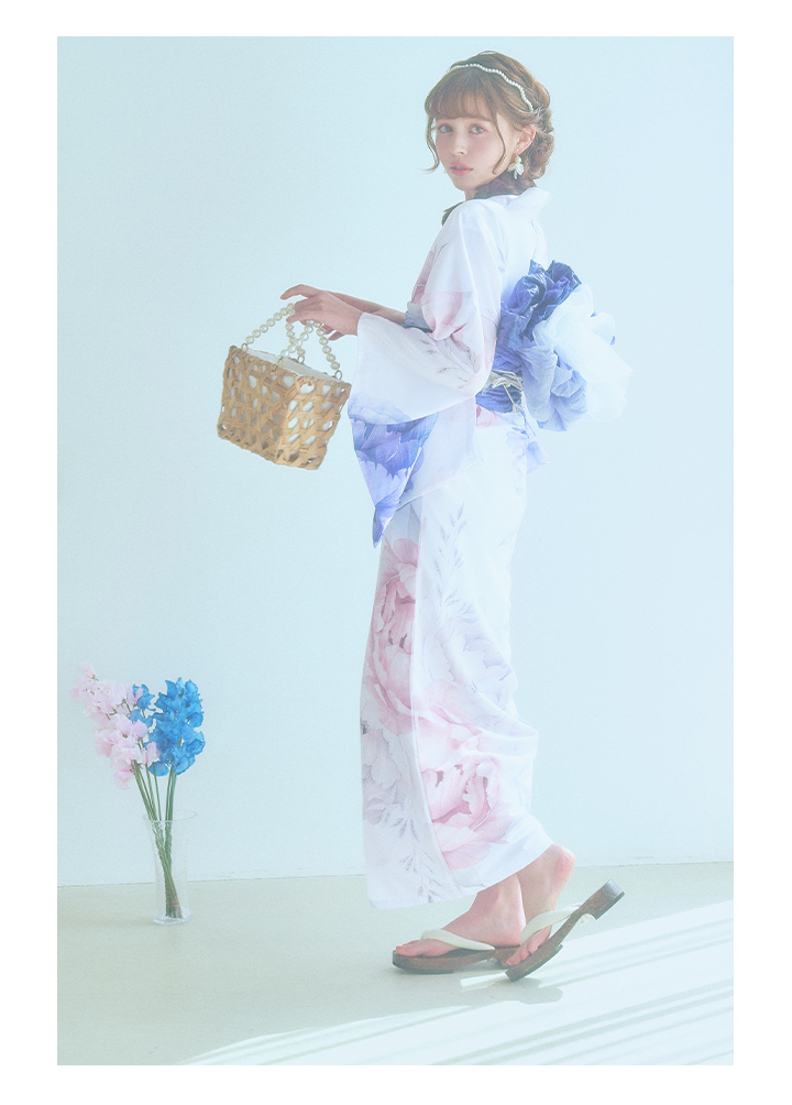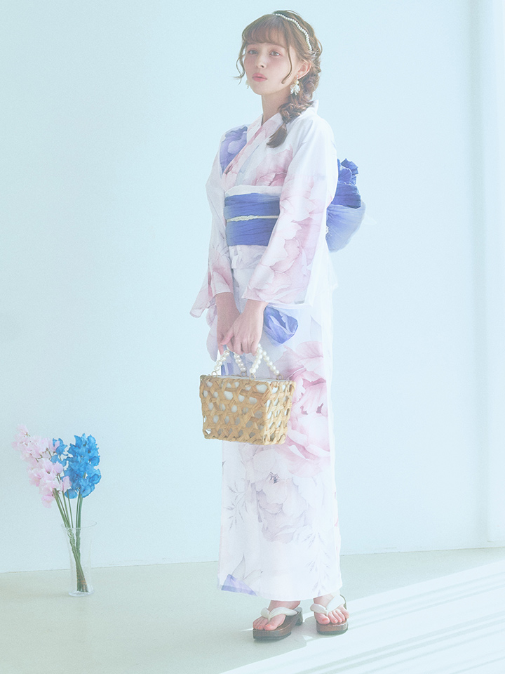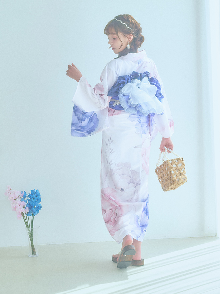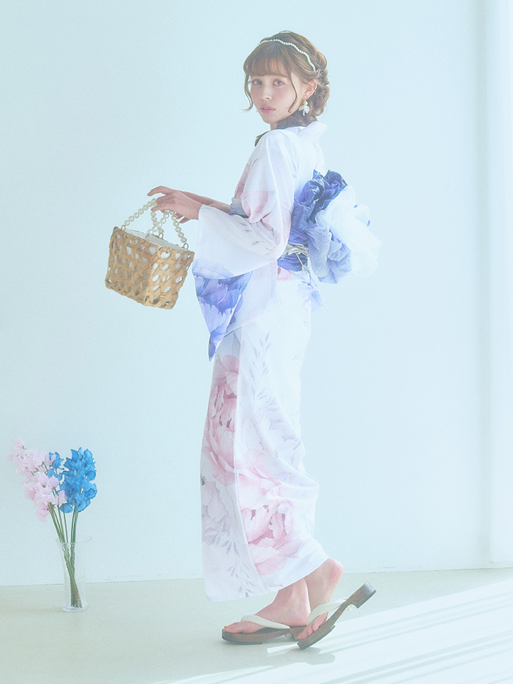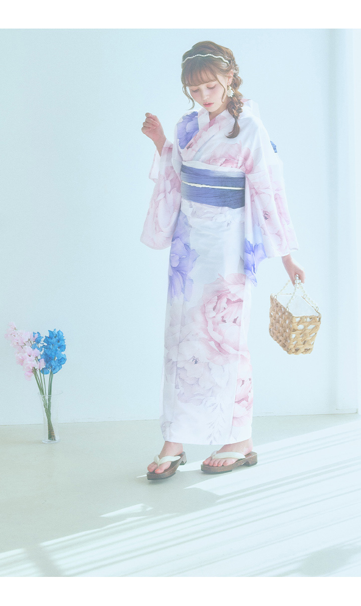 【即日発送】ホワイト×ピオニー浴衣 【浴衣3点セット 浴衣/帯/下駄】 [YMT] [Y-8048-sb-dzc-W-F-24NN]
