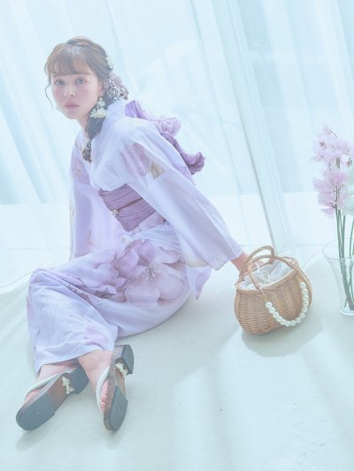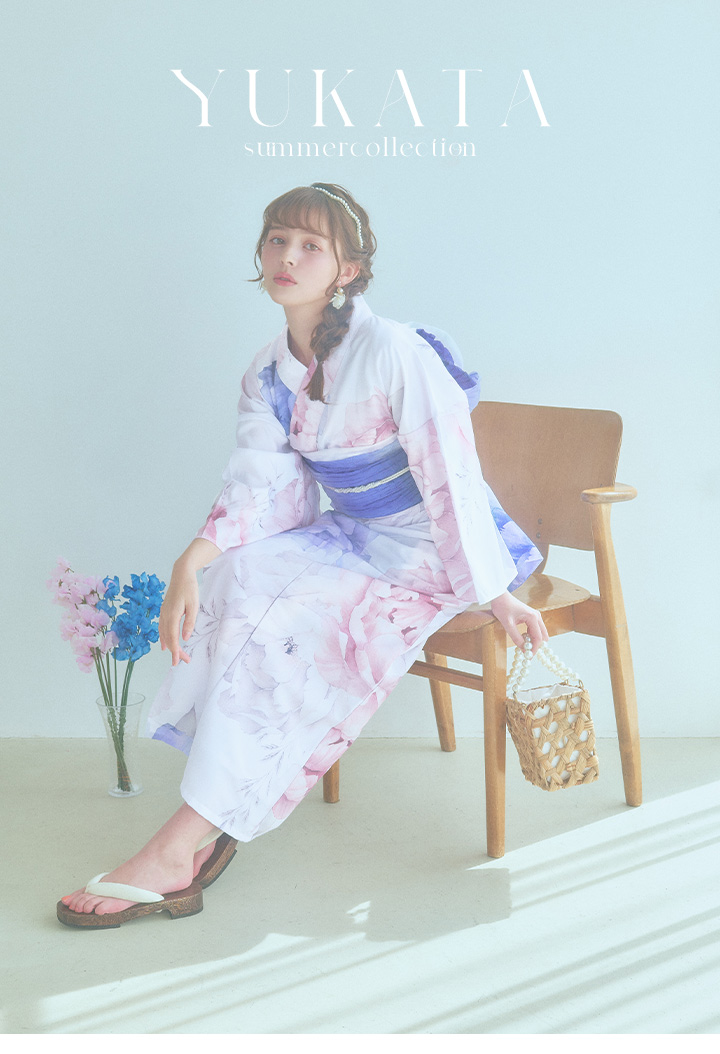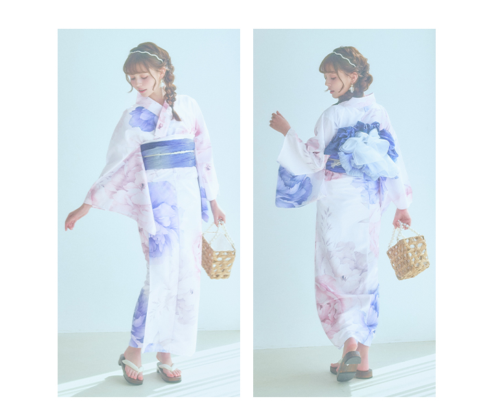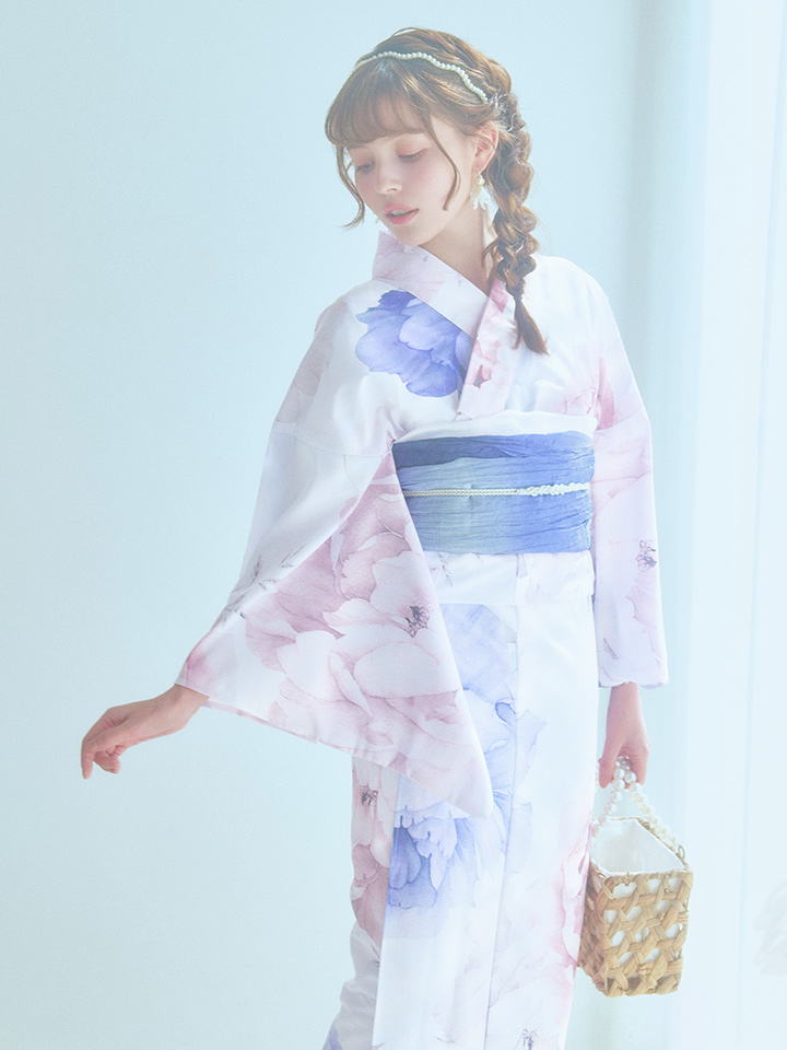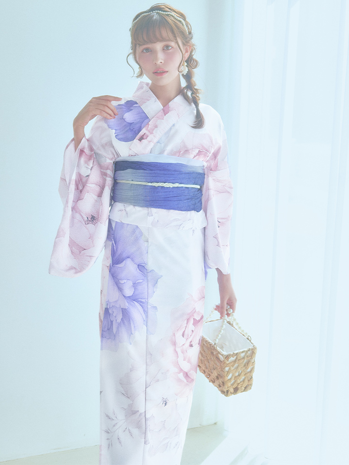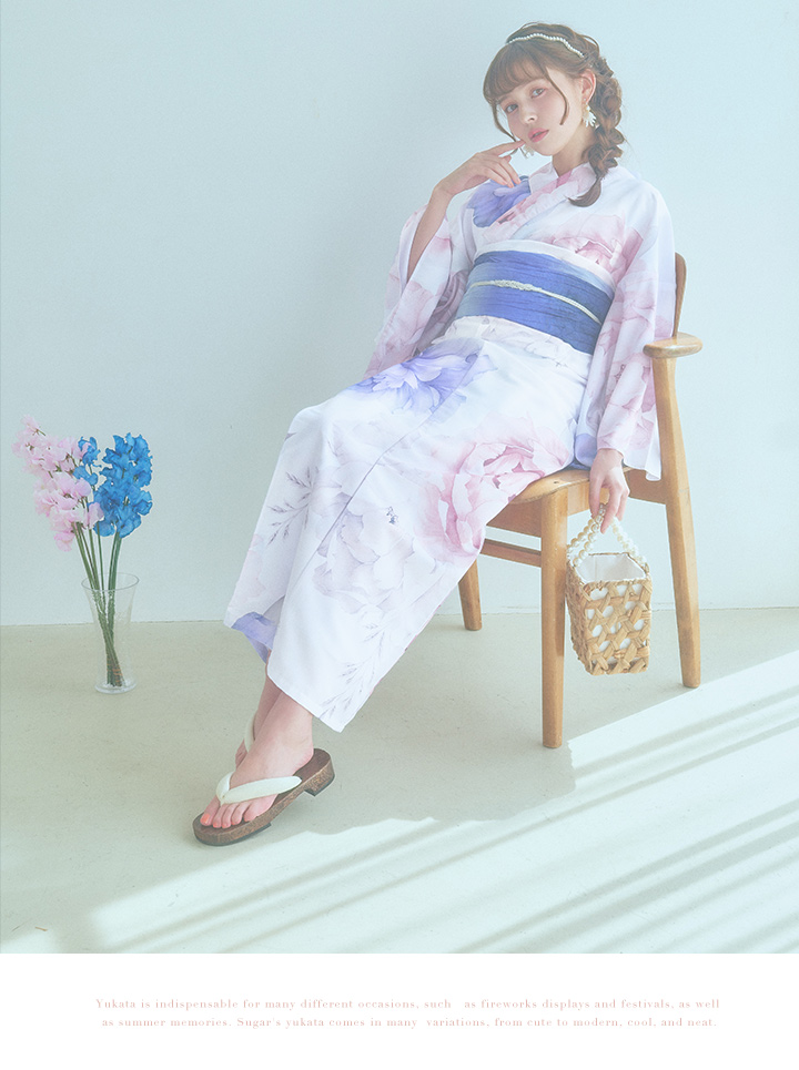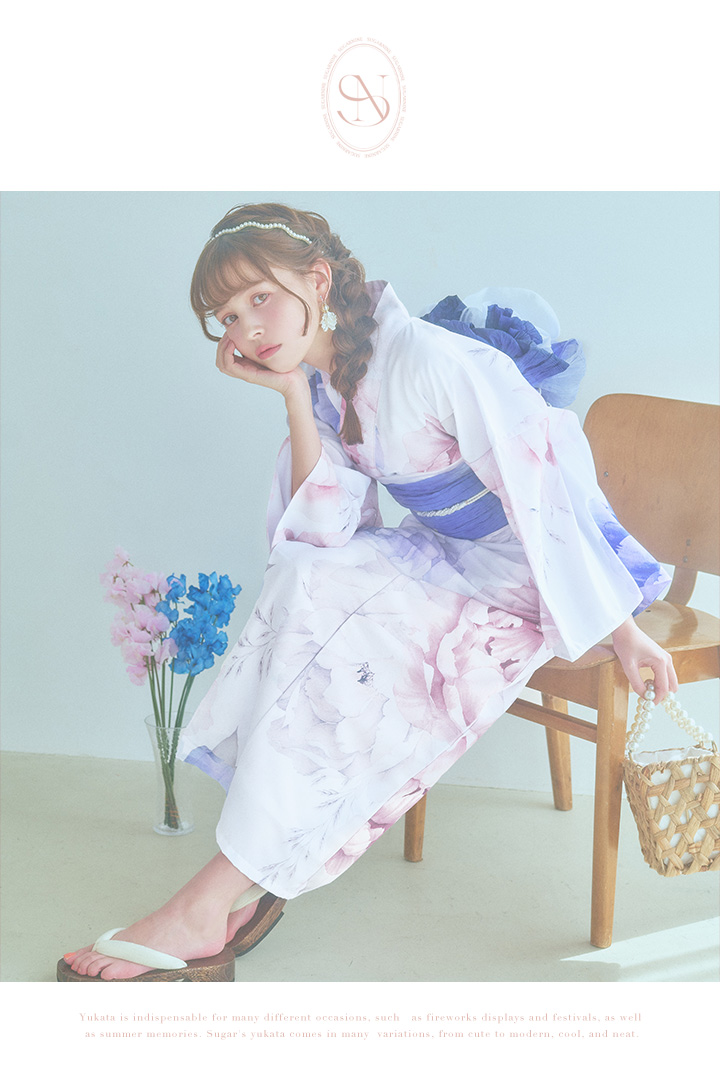 【即日発送】ホワイト×ピオニー浴衣 【浴衣3点セット 浴衣/帯/下駄】 [YMT] [Y-8048-sb-dzc-W-F-24NN]